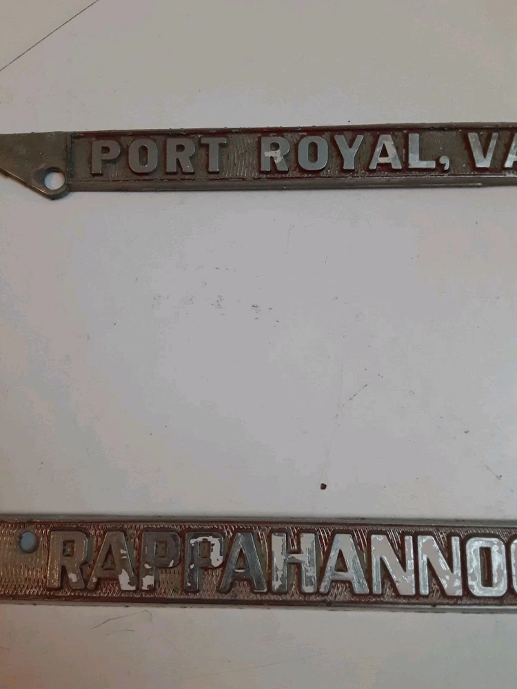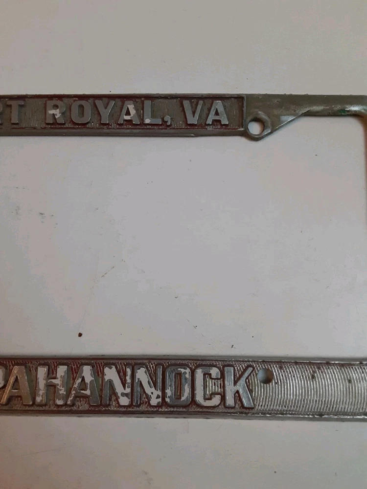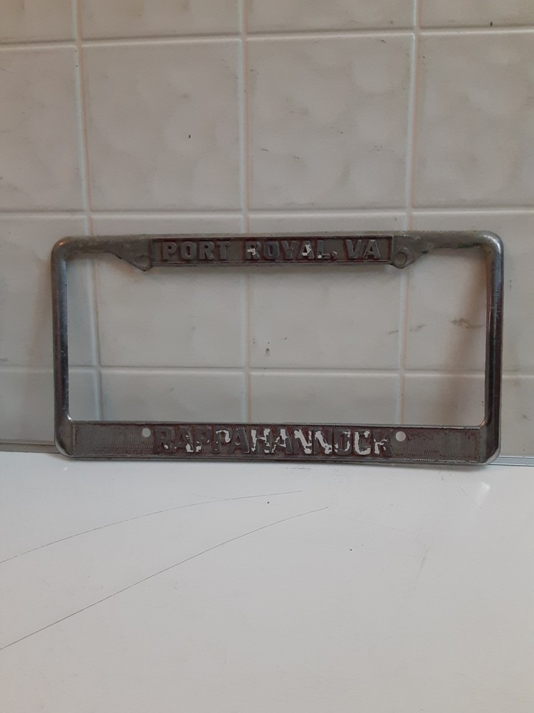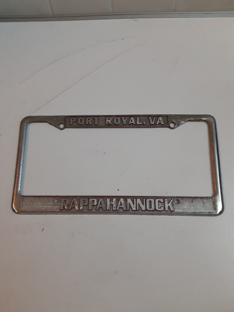 Vintage Port Royal VA Rappahannock License Plate Frame Virginia. This is used and has wear and paint loss please look at pictures for best description of condition. I will usually ship within three business days after receiving cleared payment. I will leave feedback after you are satisfied with item. I do my best to honestly accurately and clearly describe all items. Look at the pictures for best description condition. All items "as is". If you have any further questions please do not hesitate to ask