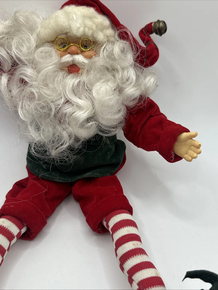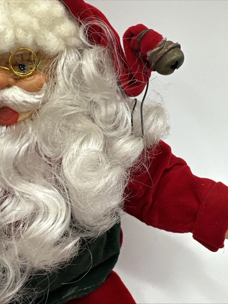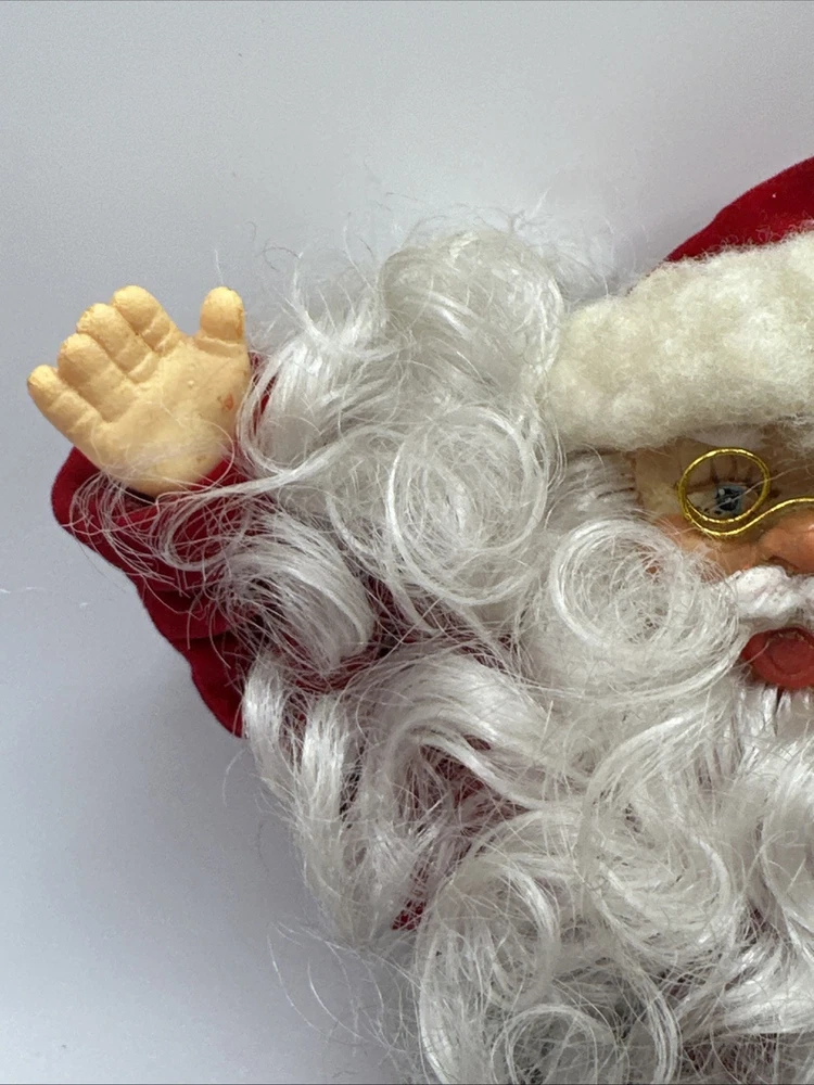 This vintage Santa shelf sitter is a charming addition to any Christmas collection. With its all-over multicolor pattern and asymmetrical shape, it is sure to stand out on your mantle or shelf. The figurine is made of a combination of plastic, velvet, and fabric, giving it a plush finish. The Santa figurine is a medium size and is perfect for adults. It features a posable design and depicts Santa in mid-centry modernism style. This collectible ornament was made in the United States and is a unique find for those who love elves and fairies themed decorations. Add this vintage Santa shelf sitter to your collection today and bring some festive cheer to your home.
