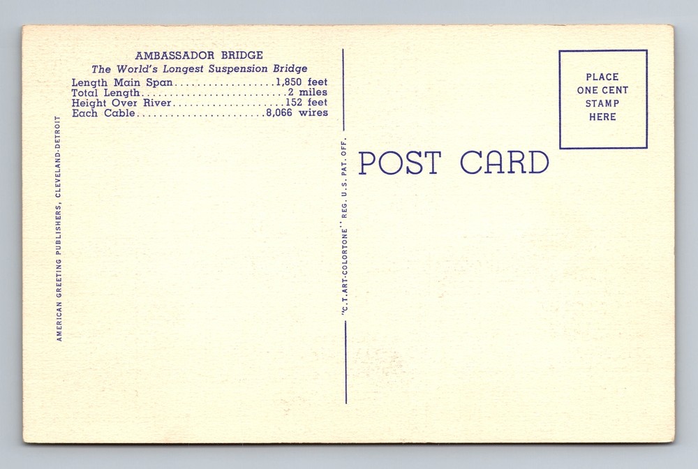 Vintage Postcard of Detroit's Ambassador Bridge to Windsor Canada