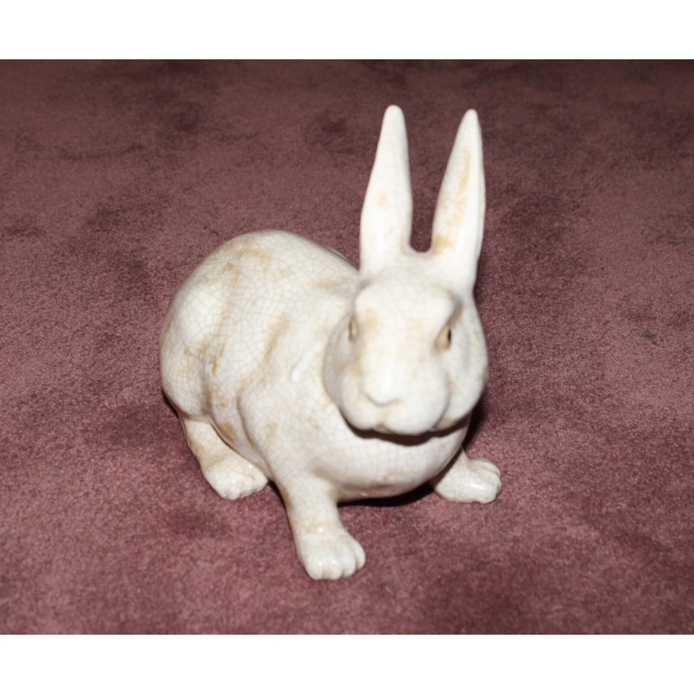 Excellent condition, no scratch or cracks. Vintage Pottery Bunny Rabbit White Crackle Glaze French Ceramic Figurine Signed