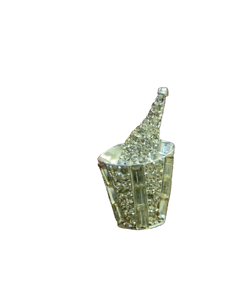 Vintage rhinestone brooch pin champagne bucket. Clear stones pre-owned vintage good condition