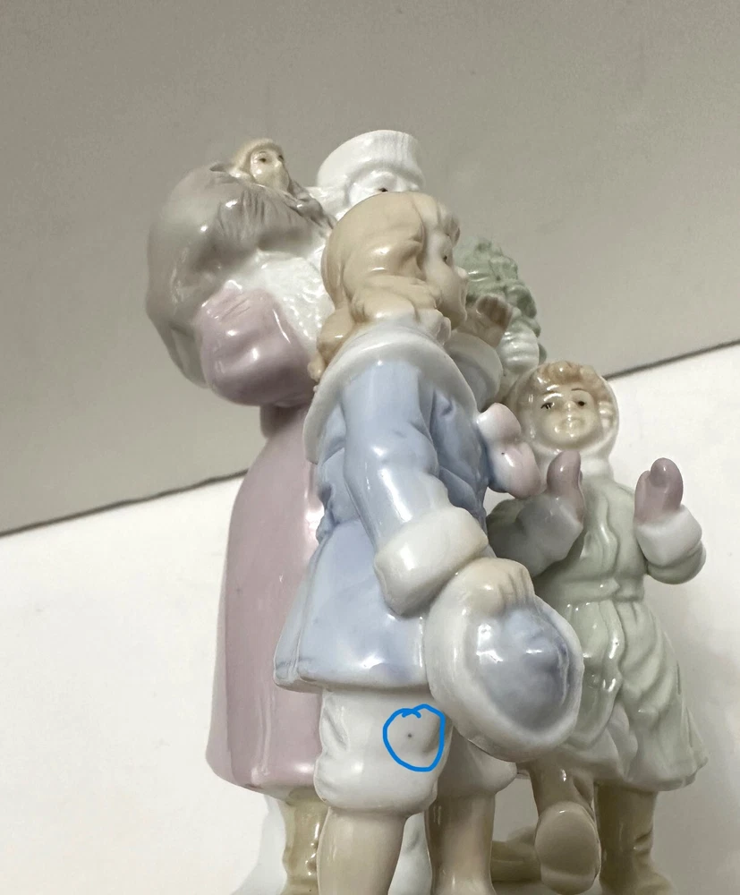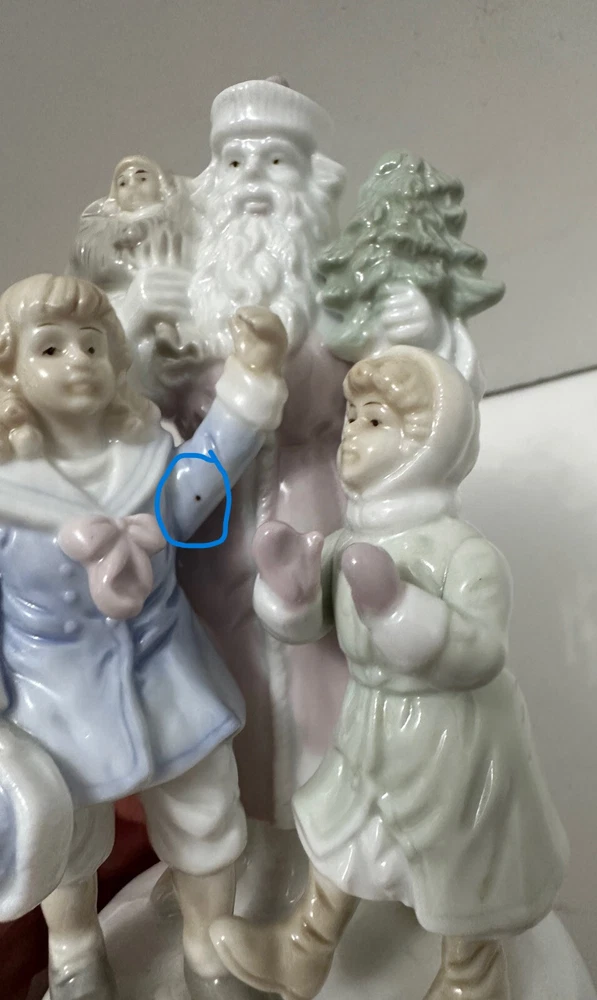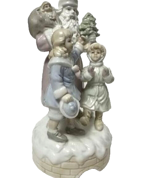 Porcelain Santa Claus w/ Children Christmas Holiday Figurine. Working wind-up music box that plays "Santa Claus is Coming to Town". Pre-owned in really good condition. There are some small dark spots which are in the paint. See pictures for these areas.