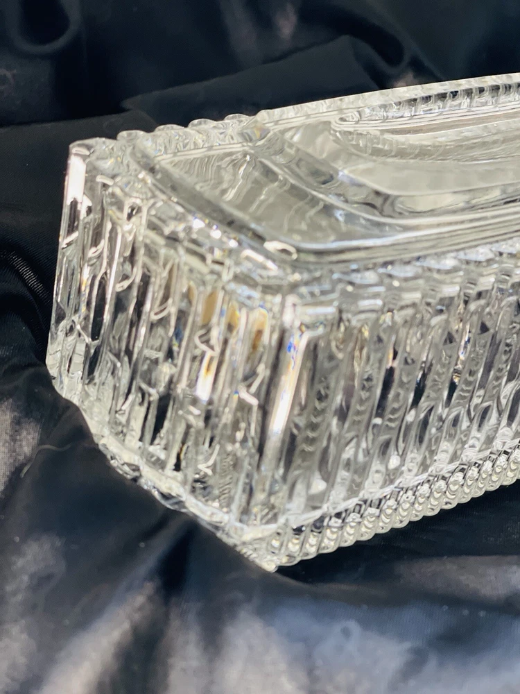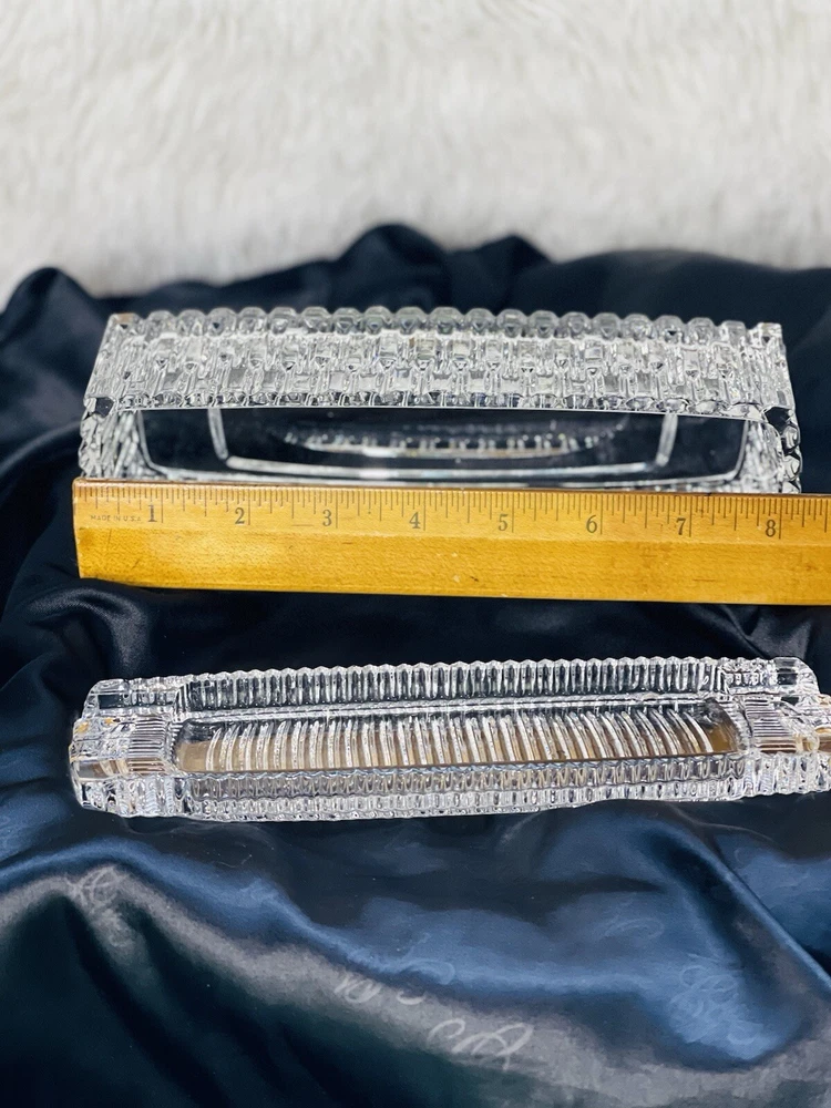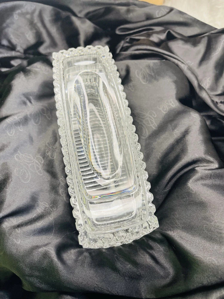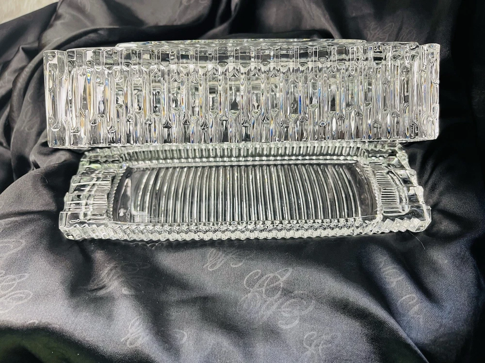 This vintage Princess House crystal butter dish is a stunning addition to any collection. The exquisite reflective crystal has shine beautifully like a diamond with color and clarity. It is substantial in weight and could serve at a palace or royal setting it is so nice. This dish is an excellent choice for use at the dining table or as a decorative piece or cigar holder or storage box Crafted from high-quality crystal, this dish is sure to impress and will make a great gift for any collector or lover of fine items. Beautifully crafted Preowned May have minor cosmetic defects from use or manufacturing Overall great condition All original photos *PLEASE CHECK PHOTOS FOR DETAILS AND CONDITION *THE FIRST PHOTO IS WITHOUT LIGHTING *THE REST OF THE PHOTOS ARE WITH PHOTOGRAPHY LIGHTING
