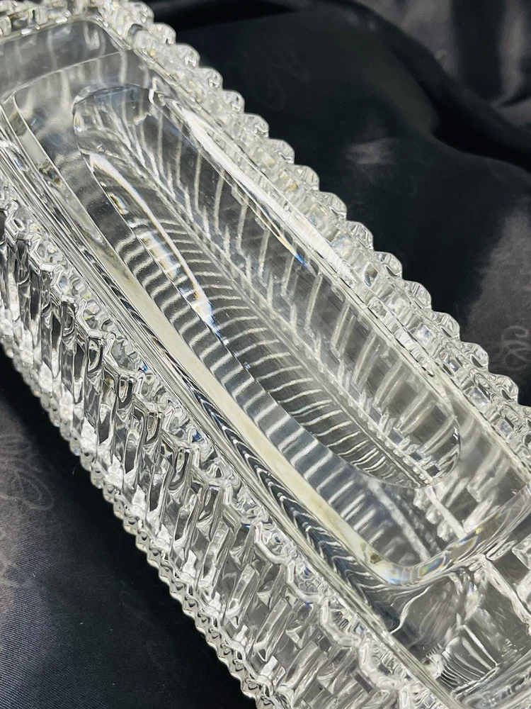 Shape: Rectangle Vintage: Yes Type: Butter Dish Features: Decorative, Lid Included, Multi Use As Trinket Or Cigar Box Theme: Elegant Crystal Tablescape Brand: Princess House Color: Clear Material: Crystal Packaging: Boxed