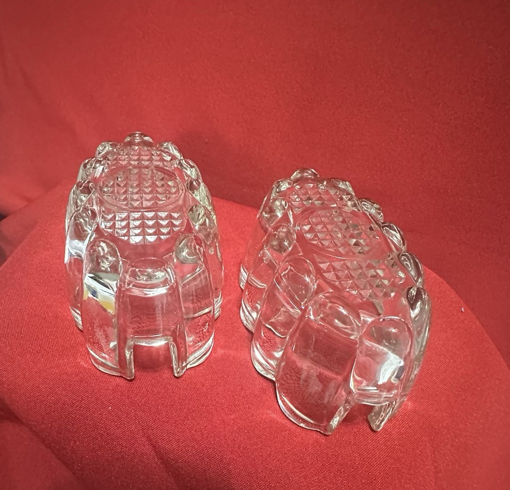 This set of vintage Princess House crystal spoon and fork buffet silverware holders includes two contemporary-style units. The holders are crafted in a sleek design, suitable for modern table settings. While not handmade, they boast a touch of elegance and functionality for serving utensils during meals or special occasions. Perfect for those who appreciate fine dining accessories with a classic yet trendy appeal.