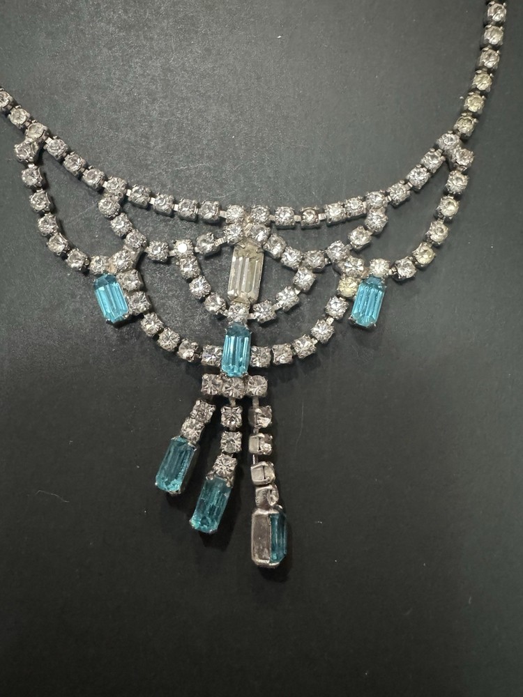 $ 23.81Vintage Christian Dior Goldtone Sapphire Emerald Crystal Choker Necklace Signed