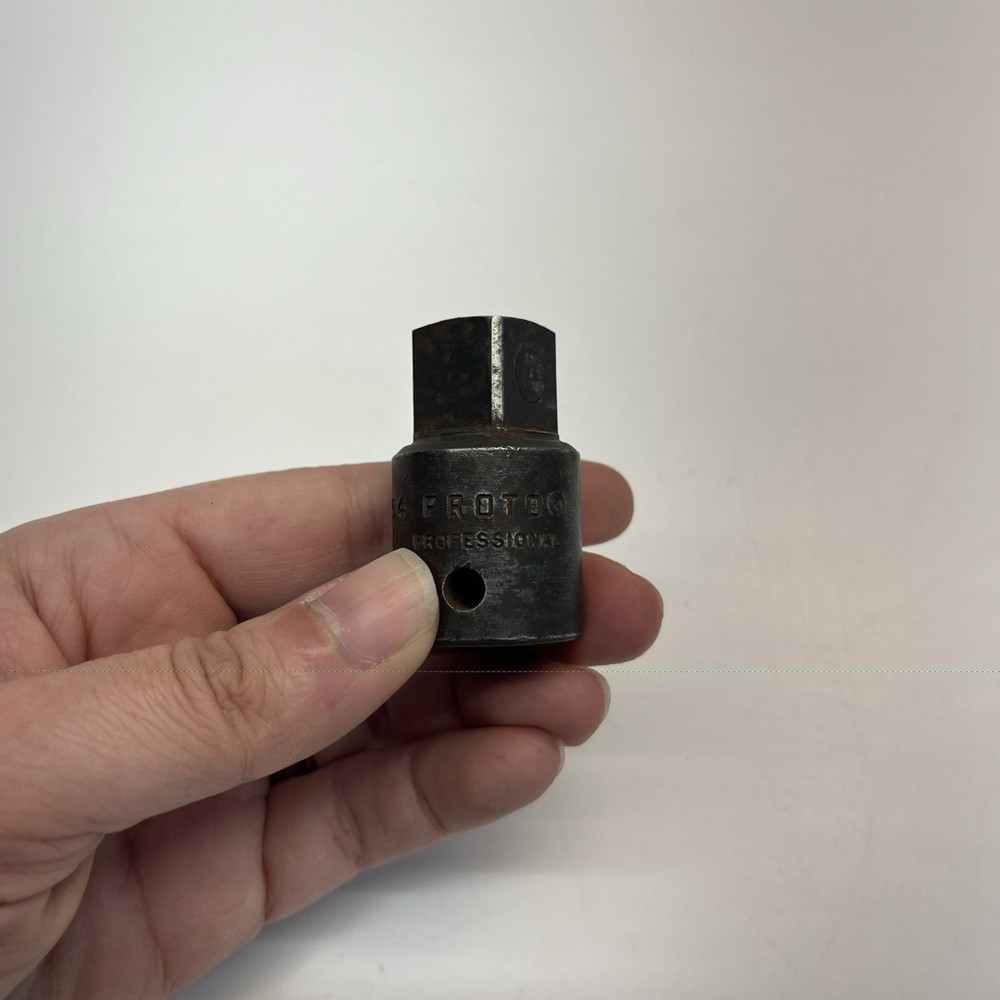 Marked Proto Professional 7654 U.S.A. Stamped professional series marking on body. Condition Used vintage condition. Shows surface wear, finish wear, and light oxidation from use and age. Drive end and socket opening show normal signs of prior use.