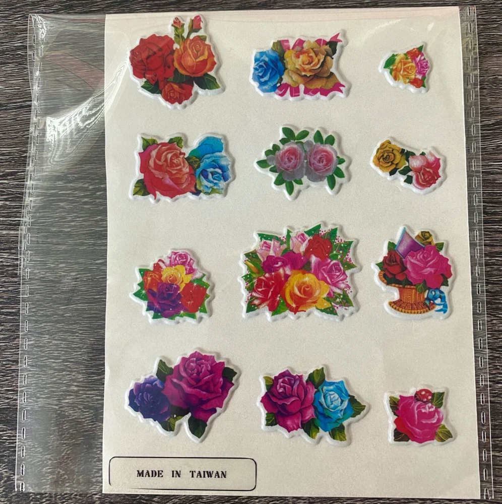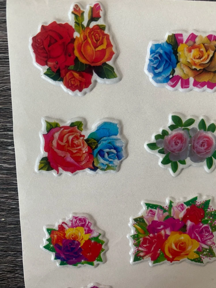 Vintage 1980s Puffy Scratch N Sniff Colorful Mixed Roses Vinyl Stick-Ons With Smell This New Full Sheet is in great condition. -Scent is not guaranteed due to age, but I am still able to smell every sticker. :) The stickers I am selling are from my Grandmother & Great Grandmother's personal sticker collection. Most are from over 30/40+ years ago. They have been in photo albums, boxes and plastic bags. These stickers are very Rare & in great condition. COLOR MAY VARY FROM DIFFERENT SCREENS PLEASE ASK ANY QUESTIONS YOU MAY HAVE ABOUT THE COLORING OF THIS ITEM BEFORE COMMITTING TO PURCHASING IT PLEASE. Check out my other collections! Thank you.