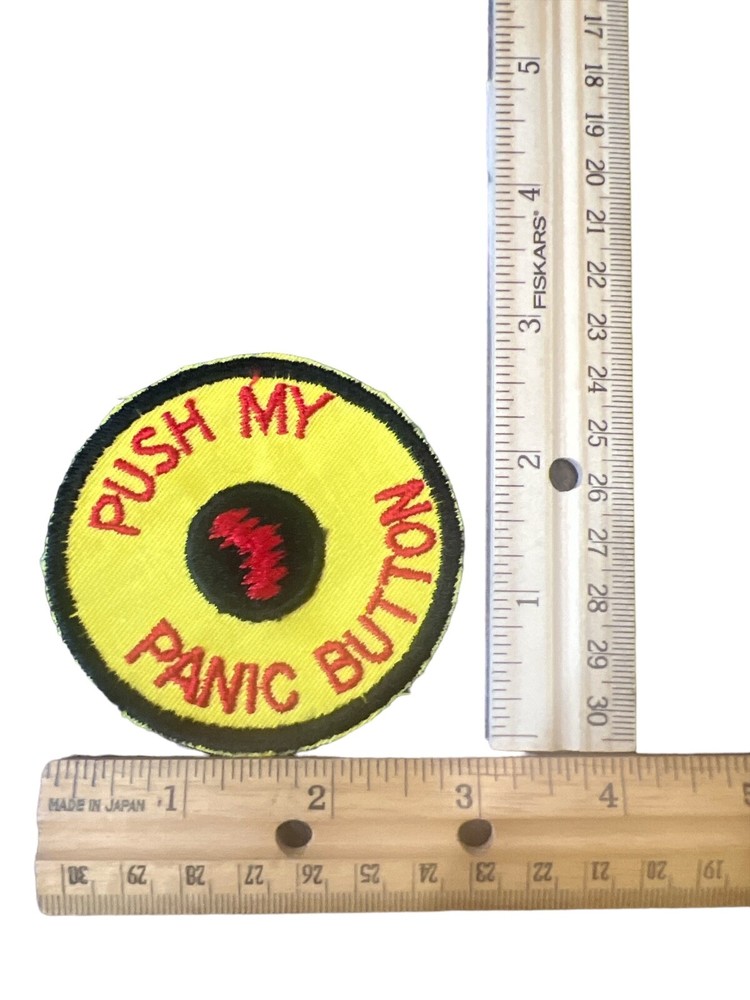 New Vintage Round Embroidered Patch "Push My Panic Button"