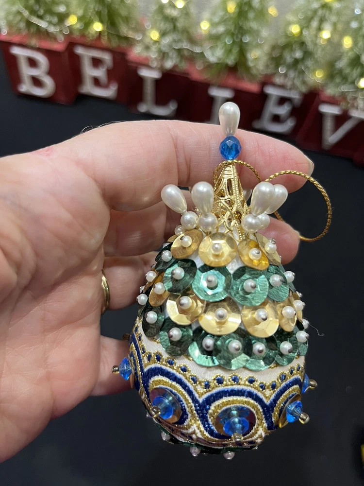 Add a touch of vintage charm to your holiday décor with this handmade push pin ornament. The oval-shaped ornament features a multicolor sequined design on a satin background, with a size of 4 inches. The antique-style ornament is perfect for Christmas or any other occasion, and is sure to catch the eye of any collector. This Mid-Century Modern style ornament is a one-of-a-kind piece that is perfect for adding a unique touch to your collection. The beaded and handmade design makes it a truly special ornament, and the fact that it is vintage adds to its charm. Celebrate the holiday season with this beautiful and timeless ornament, perfect for any recipient over the age of 18.