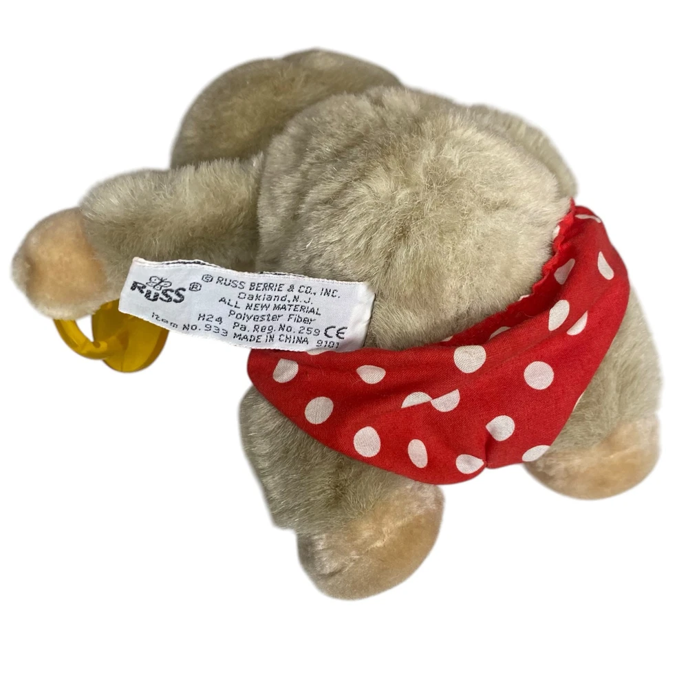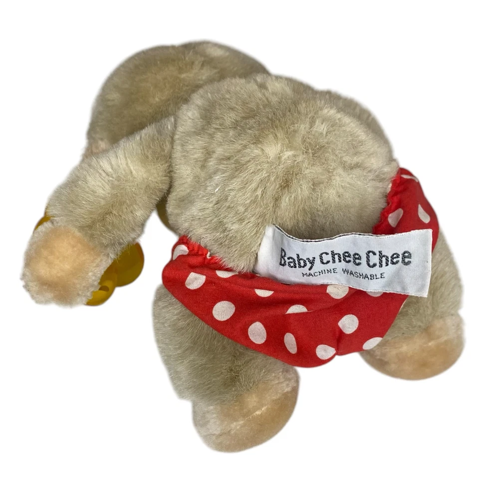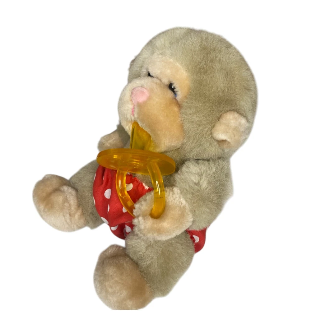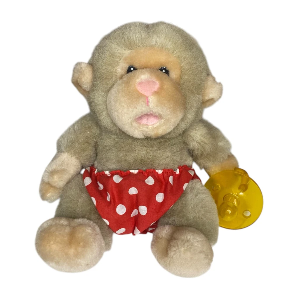 Vintage RARE Russ Berrie & Co. 6.5" Baby Chee Chee Diaper Plush Stuffed Monkey Beautiful rare find! This Russ Berrie & Co. Stuffed Monkey is just precious Tanned with a red and white polka dot diaper He is also holding on to a rubber pacifier that fits in his mouth It's approximately 6.5" tall while sitting down Pre-loved and excellent vintage condition Color in pics may vary due to lighting and/or monitor settings SHOP POLICIES * All items ship within 1-3 business days (I always try to ship by next business day) * This item is used vintage/pre-loved * Any defects (if any) are noted and shown in the photos * All sales are final * Please review the description/pictures and ask questions before purchasing