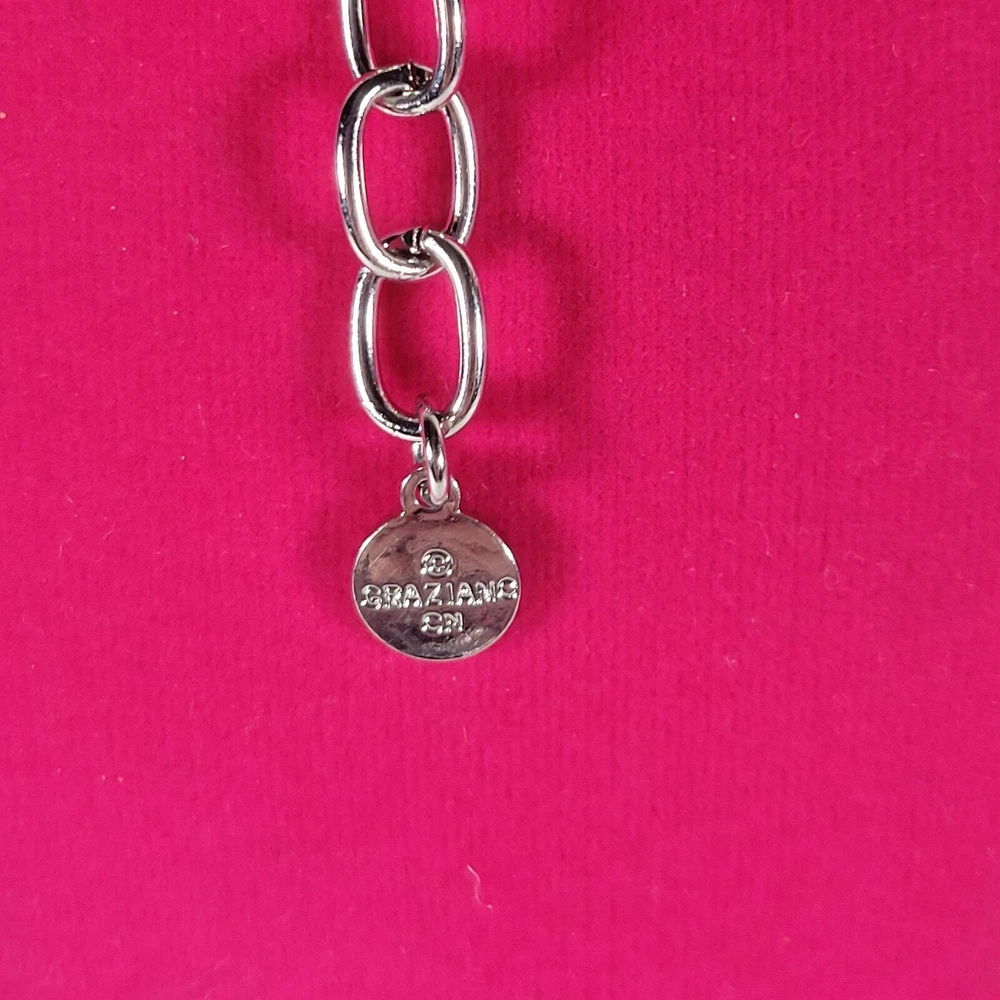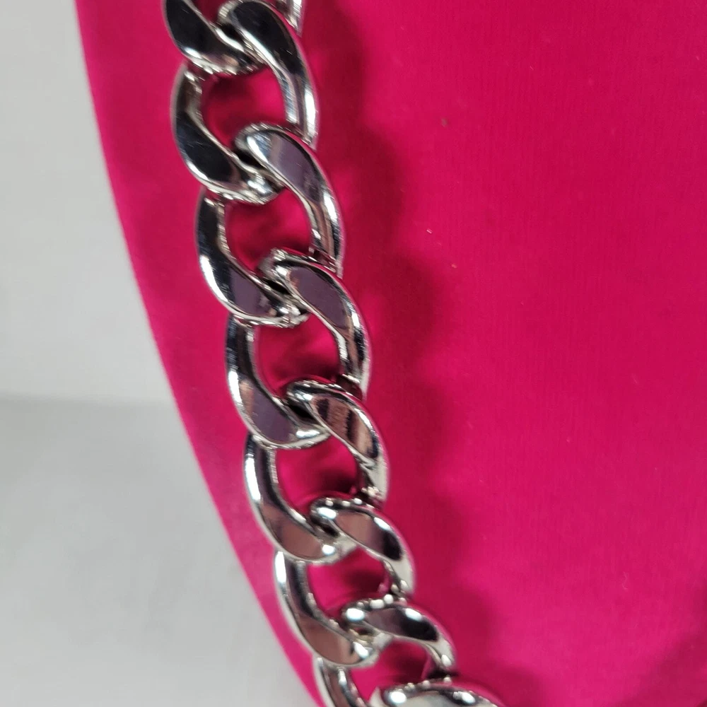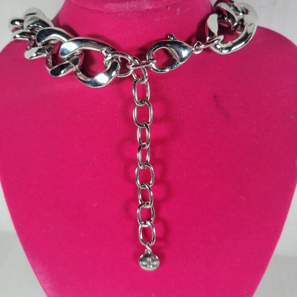 Make a bold statement with this vintage RJ Graziano silver tone chunky chain choker. The curb link chain measures 15 inches in length and features a lobster closure for easy adjustment. This necklace is signed by the brand and has a gothic, punk, and steampunk theme that perfectly suits the 90s Y2K style. The necklace is handmade and has a statement style that is perfect for those who want to make a bold fashion statement. The silver color of the necklace complements any outfit and the RJ Graziano brand is known for its quality jewelry. This necklace is a great addition to any jewelry collection and can be worn on any occasion.