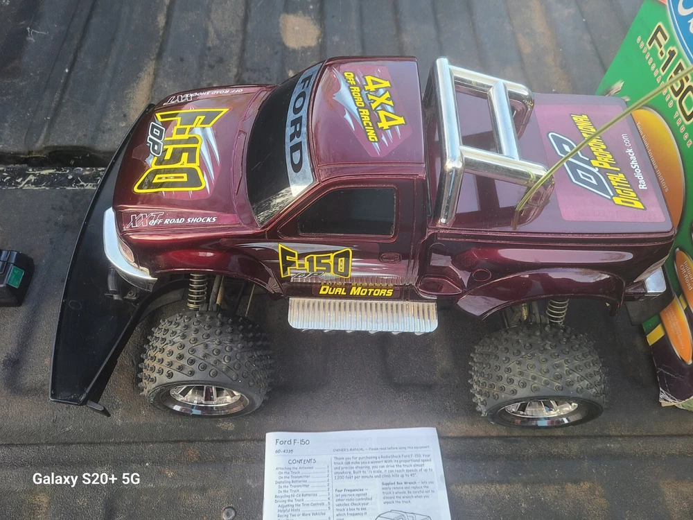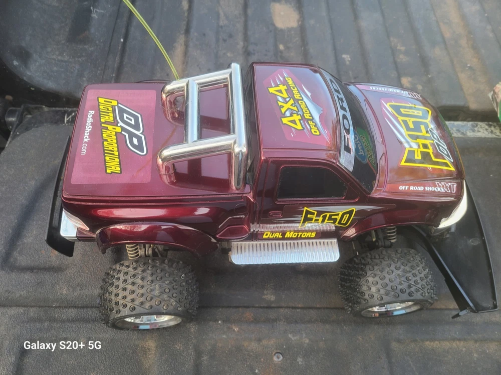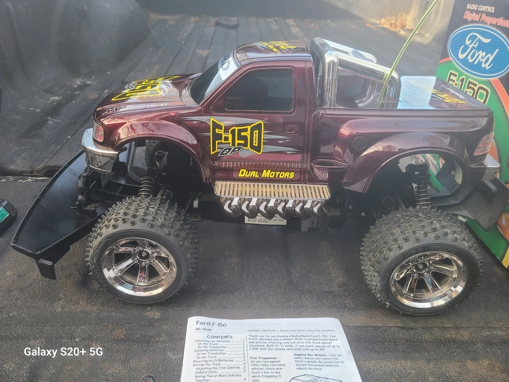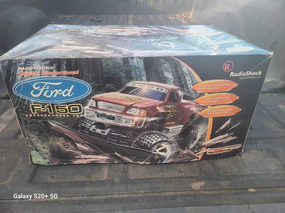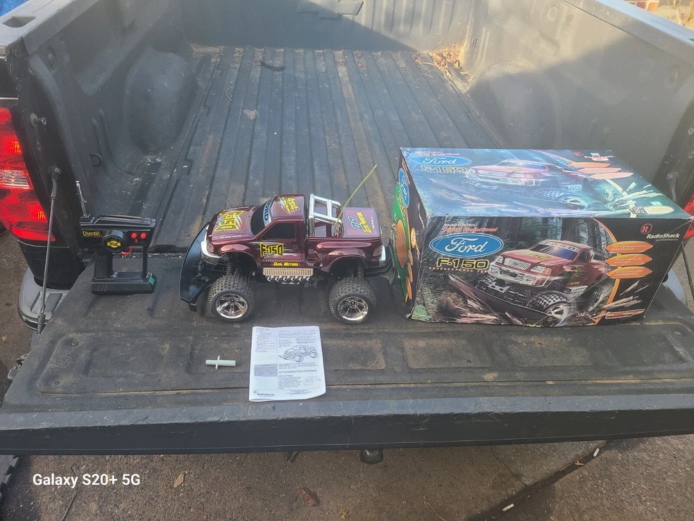 This vintage 2002 Radio Shack Ford f150 is being sold as is for parts or repairs only. There is no choice in this catergory for that but I have not tested this so I do not know if it works. Both battery compartiments are clean of corrosion. The truck had some dust on it which I cleaned. It will come with the remote pictured plus the original box. I did tape the corners on the box. Once again it is sold as is as pictured with no returns. No batteries or chargers are included. Please feel free to ask questions and thank you for looking...