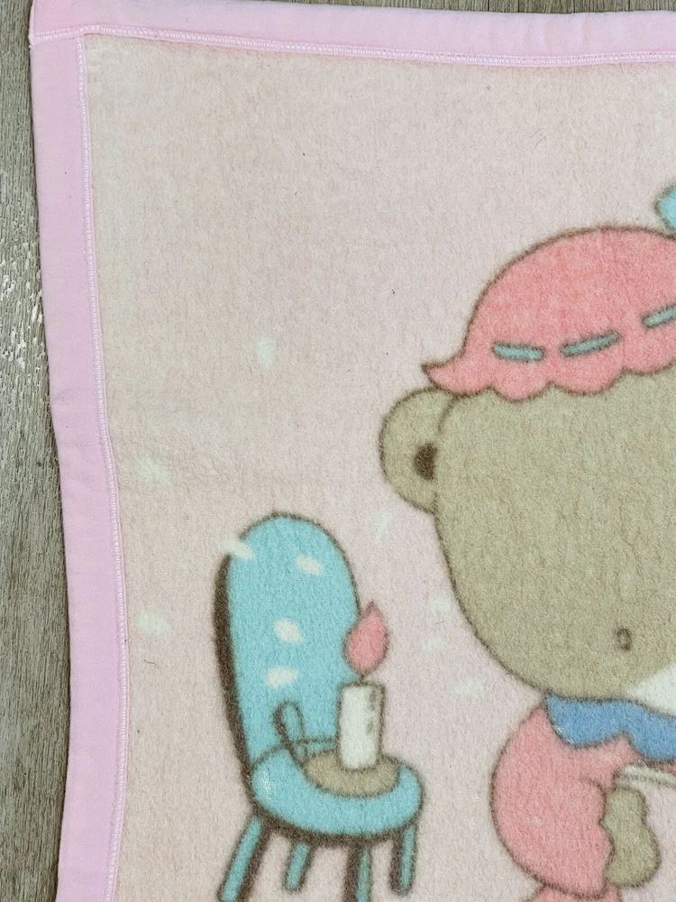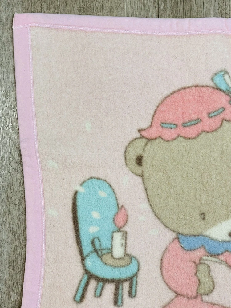 Vintage Rare Fusen Usagi Wool Baby blanket Bears Bed Time Stories 31'' x 41'' The blanket is in good gently used condition with no tears or holes. It does have some spots present .