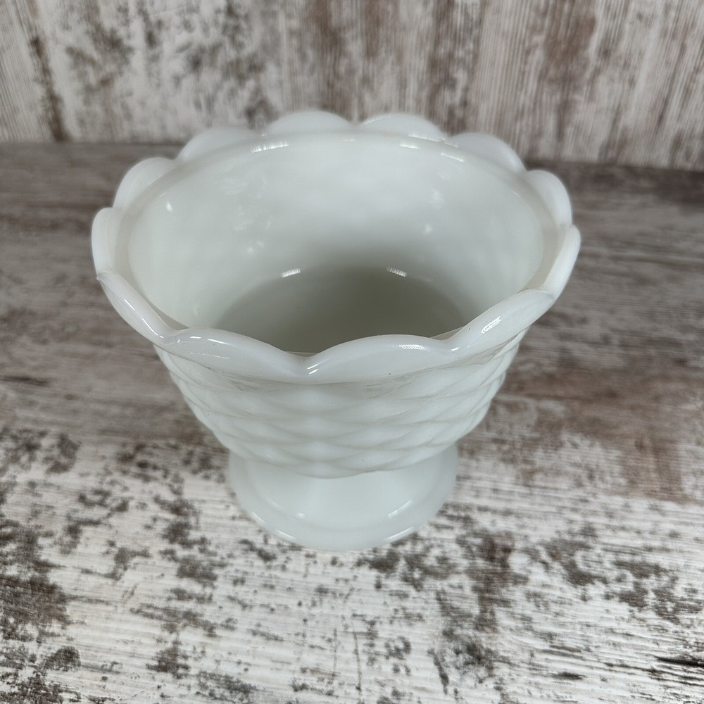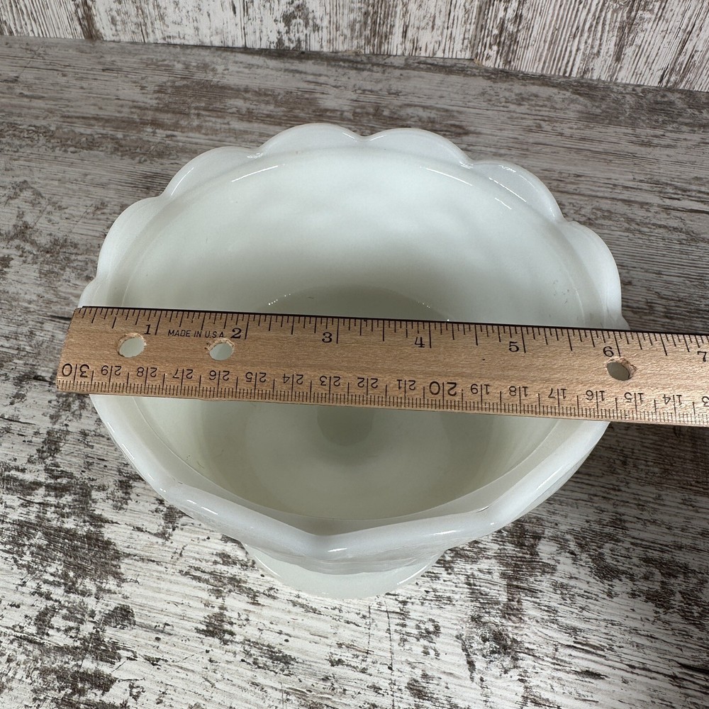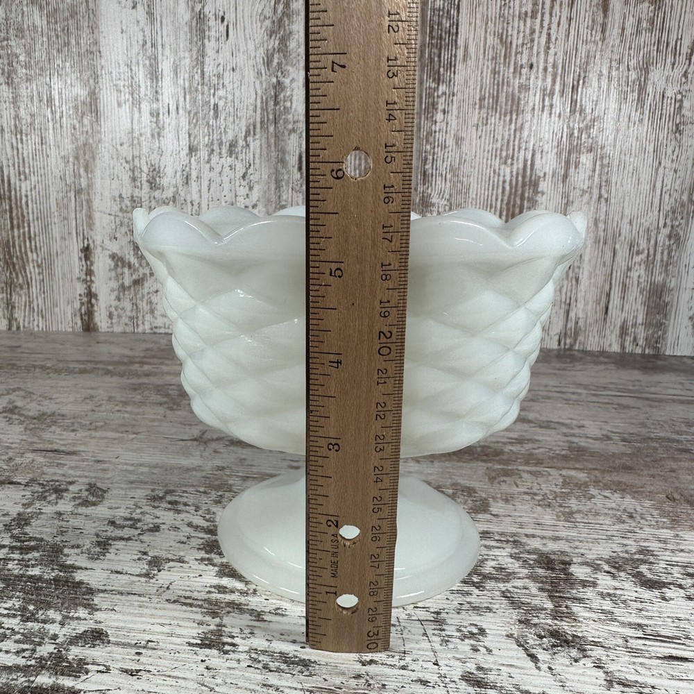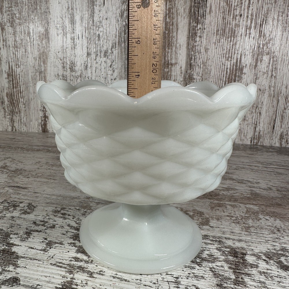 Model:Footed BowlOriginal/Licensed Reproduction:OriginalVintage:YesShape:Roundgtin13:Does not applyMaterial:GlassProduction Style:Opaque GlassUPC:Does not applyColor:WhiteBrand:UnmarkedType of Glass:Milk GlassProduction Technique:Fused GlassType:Candy DishFinish:Glossy