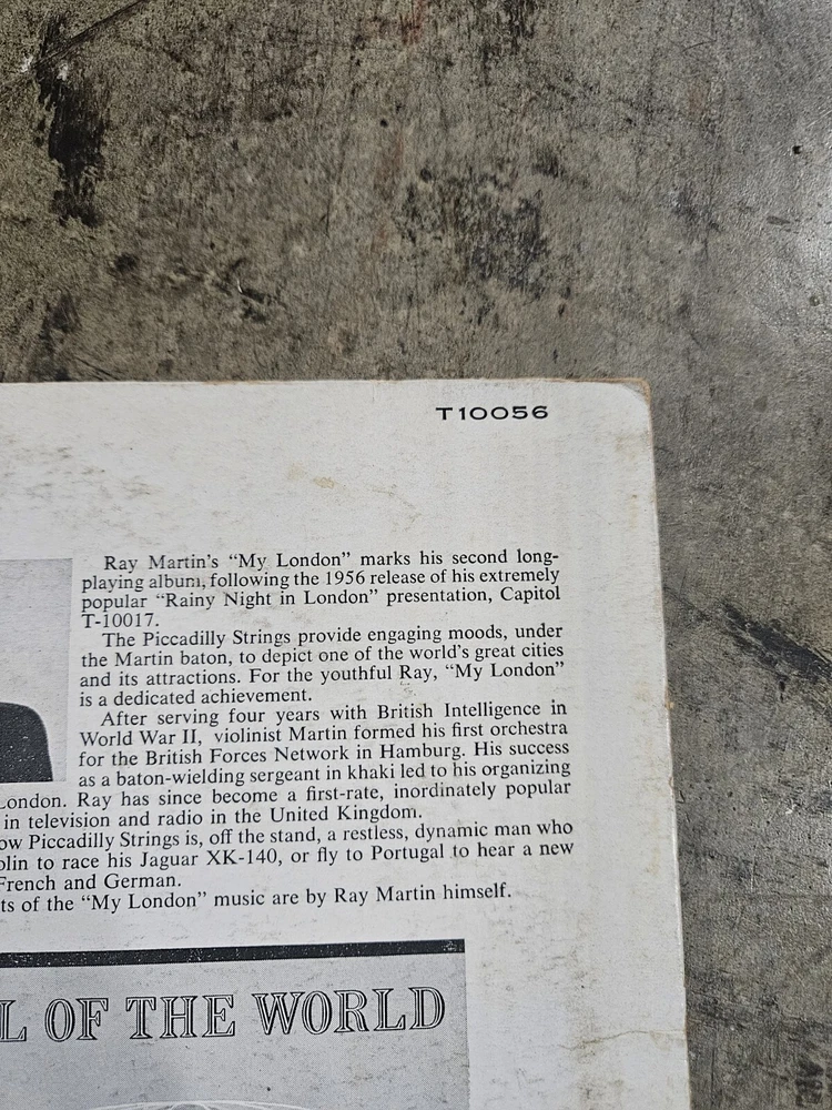 Vintage Ray Martin-The Romantic Music Of My London (LP, 1957, Capitol T10056)