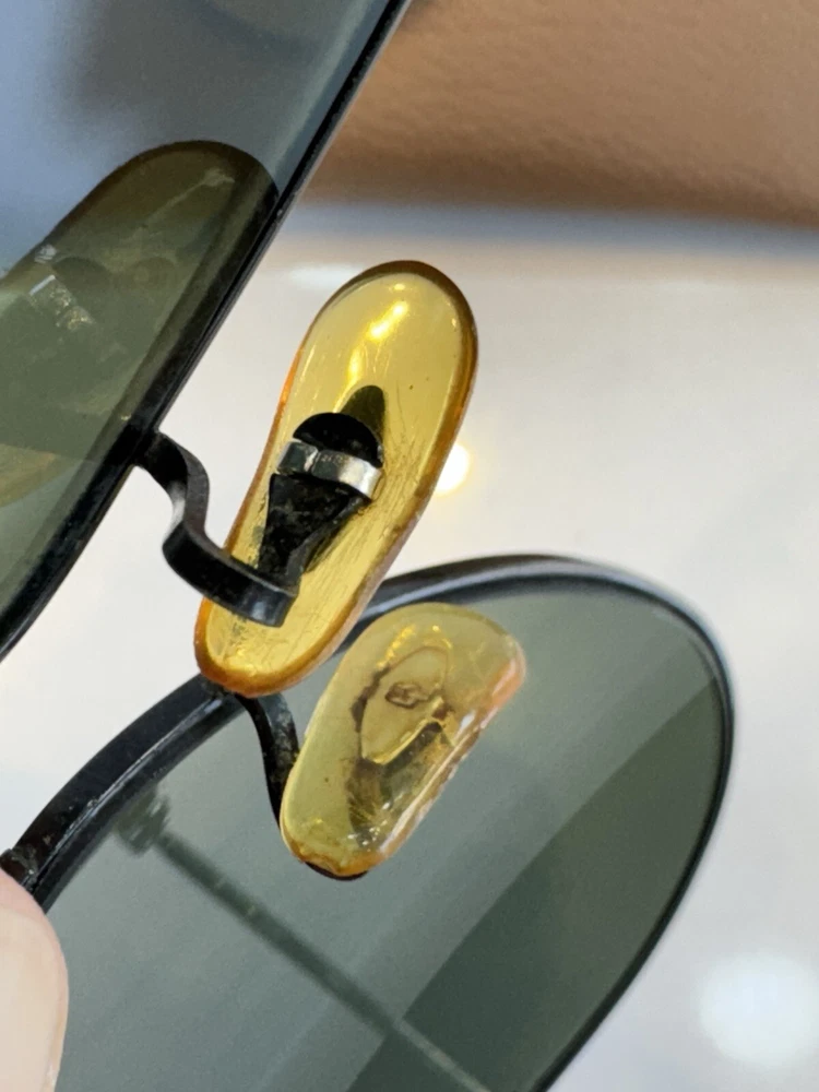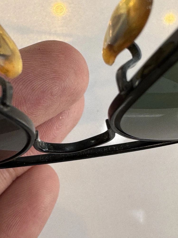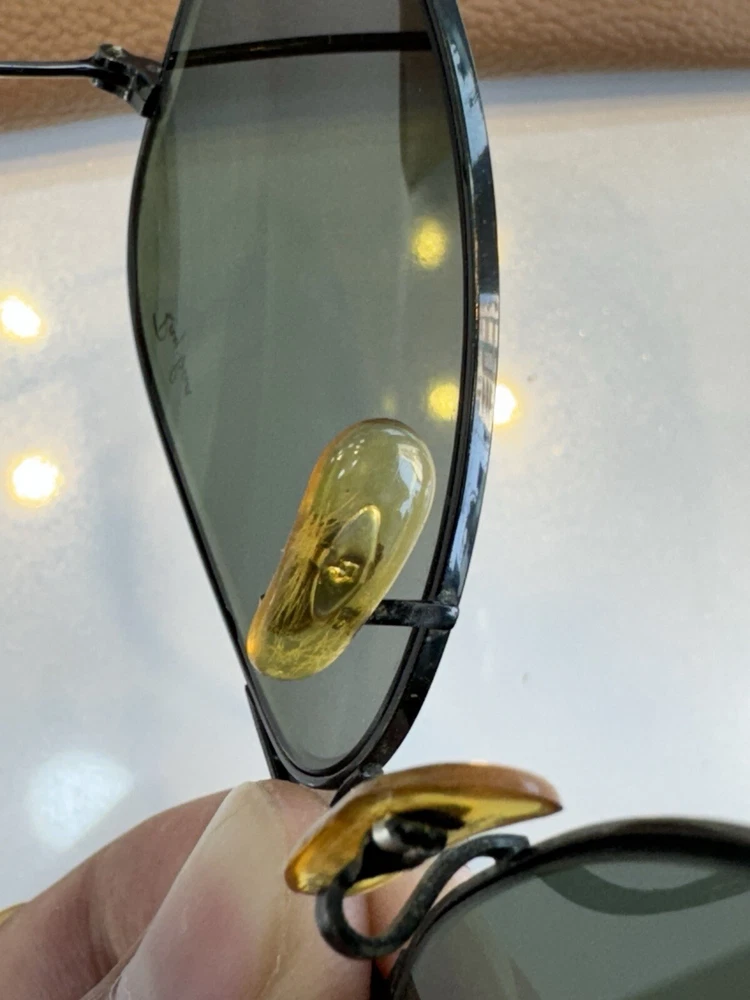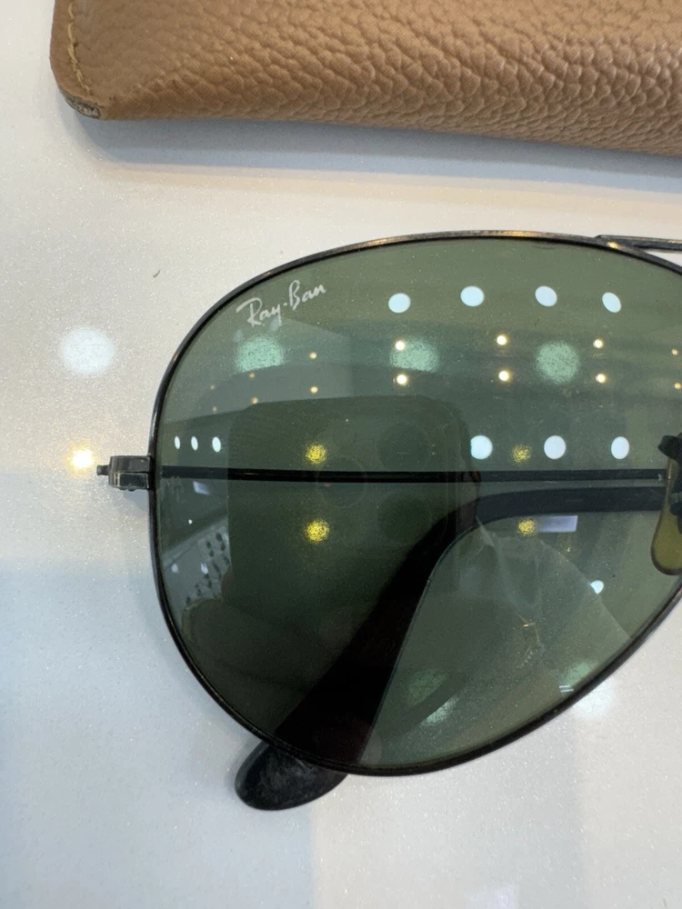 Authentic b&l vintage ray ban sunglasses with case black frame and green lenses G-15 The size on the frame is 58 Frame is marked with B&L USA The nose pads are original bl Glasses are etched with BL Glasses have a few micro scratches on them but overall they don’t hamper the vision. They are ready to use. In case of any doubts feel free to contact me. Returns are accepted so buy with confidence. Do check out my other listings for more vintage sunglasses