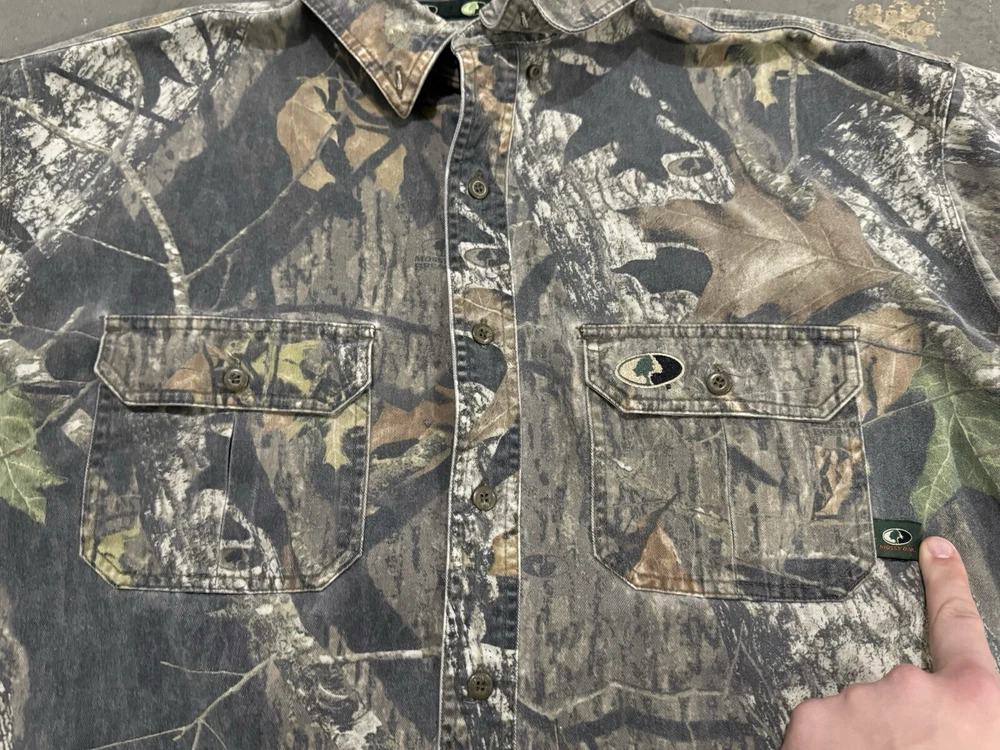 Vintage Real Tree Camo Mossy Oak Apparel Button Up Long Sleeve Shirt-Size XL. Condition is Pre-owned. Shipped with USPS Ground Advantage.