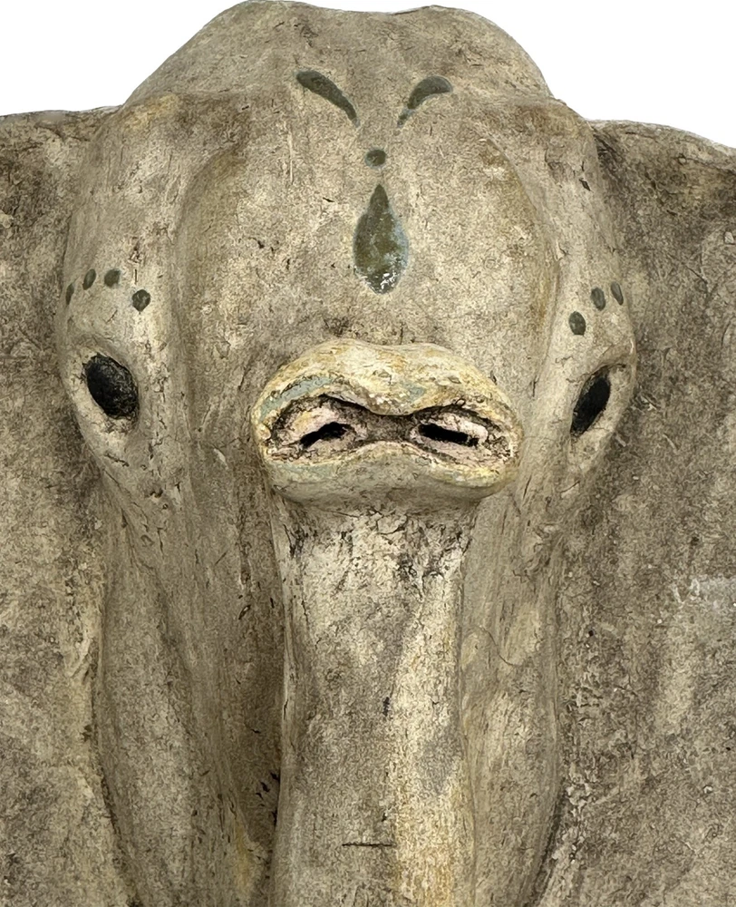 Vintage Gray Elephant Head Handcrafted Concrete Wall Hanging Sculpture 10" Tall Vintage realistic gray elephant head wall sculpture. Handcrafted from durable clay or concrete. Impressive 10 inches in height and weighs Apx 6 lbs! Unique and eye-catching design with detailed features such as textured skin and tusks. Adds a touch of exotic, rustic charm to any space. Perfect for animal lovers and collectors. Timeless piece with a distinct vintage appeal. Approximate Measurements Length: 15" Height: 10" Weight: 6 lbs Take a look at the actual photos as they are part of our description.