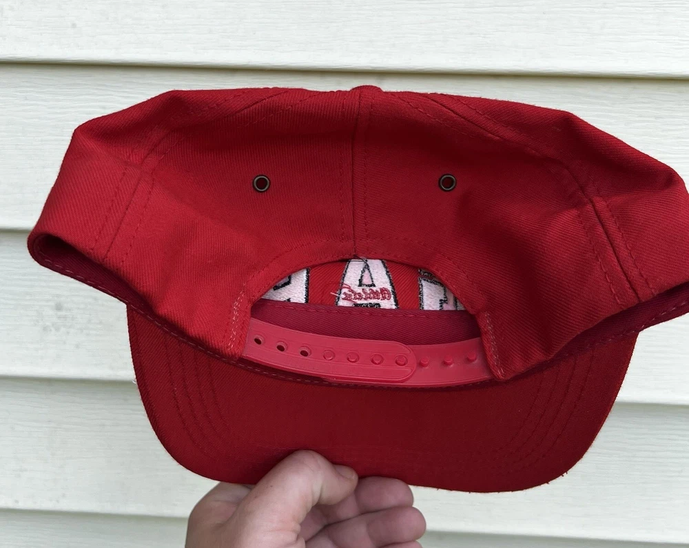 Show off your vintage swag with this red snapback hat from GAP Athletics. Being Made in the USA, this hat features a solid pattern and a tonal interior that complements the red exterior perfectly. The adjustable feature ensures a comfortable fit for everyone, while the lightweight material makes it perfect for summer and spring. OSFA-Adjustable to multi sized range Crafted from a blend of polyester and wool, this hat is both stylish and durable. The GAP brand is renowned for its quality products, and this hat is no exception. Perfect for casual occasions, this snapback hat is a must-have for any fashion-conscious man. Get your hands on this rare piece today!