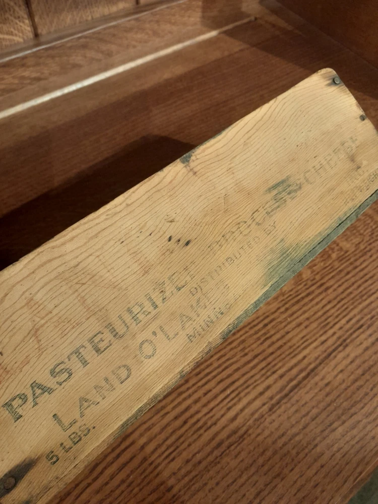 This vintage wooden box features the iconic red logo of Land O Lakes and was originally used to store their delicious pasteurized-process cheese. The box is made of sturdy wood and has a rustic, farmhouse feel that would make a great addition to any home decor. The brand, Land O Lakes, is well-known for their high-quality dairy products and this box is a true piece of advertising history. It would make a unique collectible for any fan of dairy-themed memorabilia. With its original design and sturdy construction, this vintage Land O Lakes wooden box is a must-have for any serious collector.