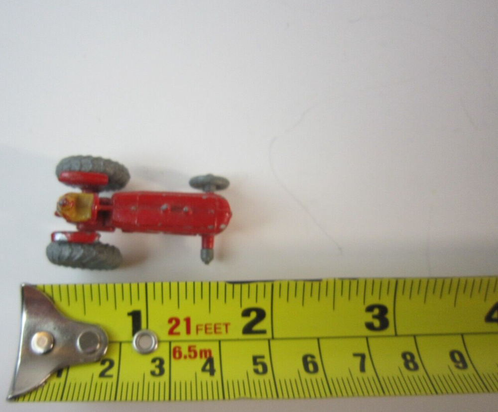 This tiny vintage Massey Harris tractor is full of character! Despite the missing front tire and some wear, its rustic charm shines through. The distressed red paint and compact 1.5" size make it perfect for collectors who love weathered farm memorabilia. Pictures accurately show its condition, so you know exactly what you're getting. It’s a quirky, conversation-starting piece—ideal for displays or creative projects. Great for those who appreciate history over perfection!