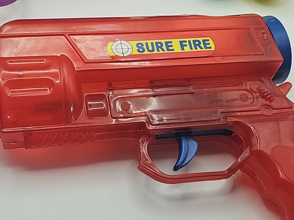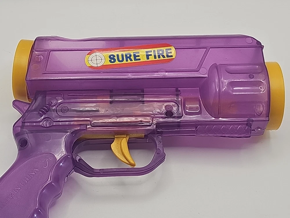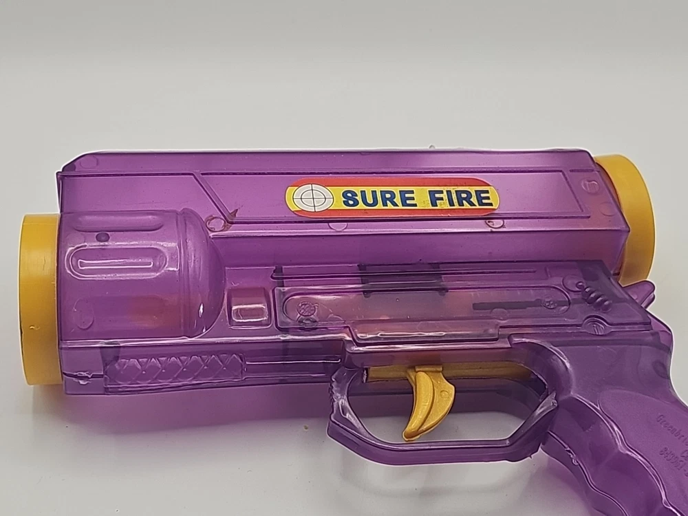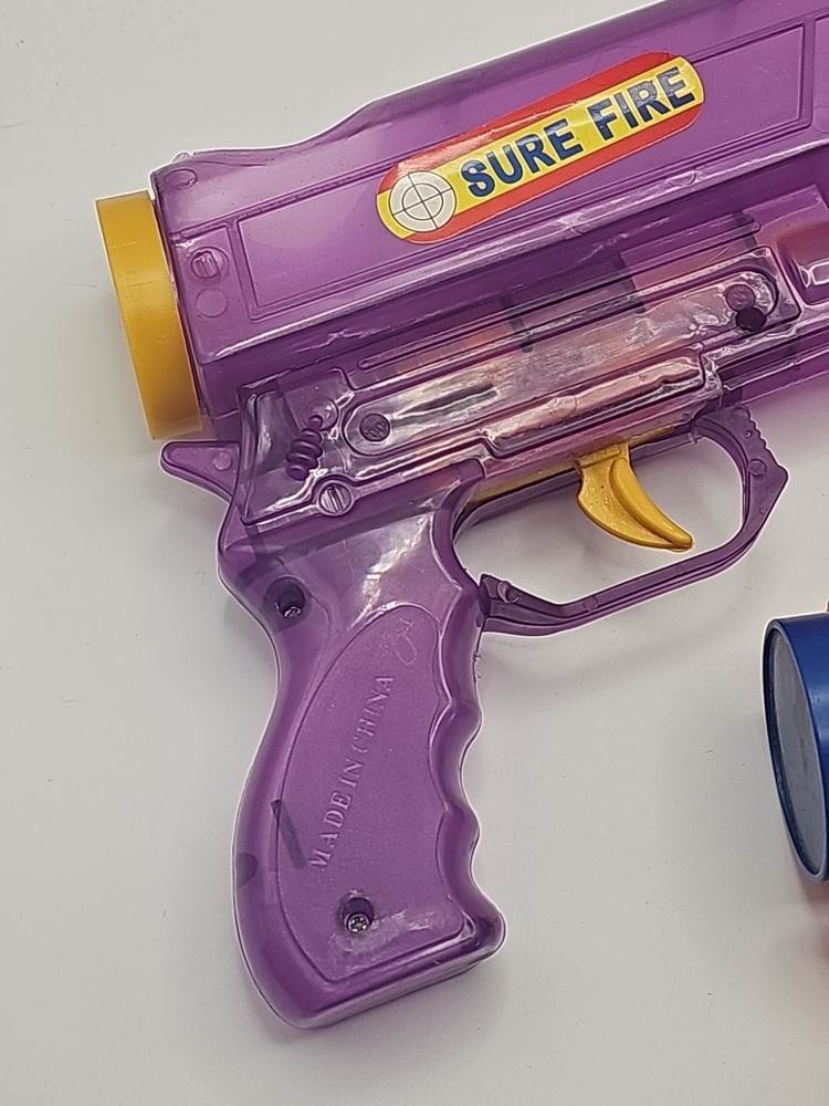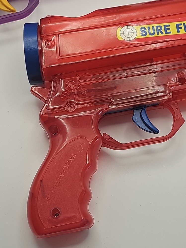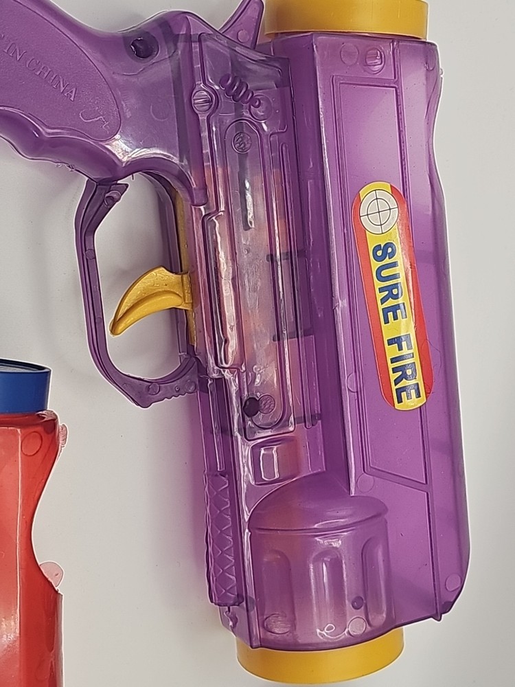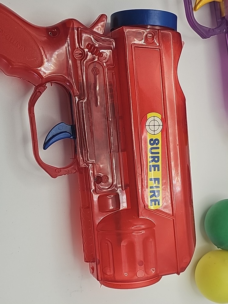 2 Vintage Plastic Ping Pong Ball Gun Red & Purple W/ 3 Color Balls Still Shoots . Condition is Used. Shipped with USPS Ground Advantage.