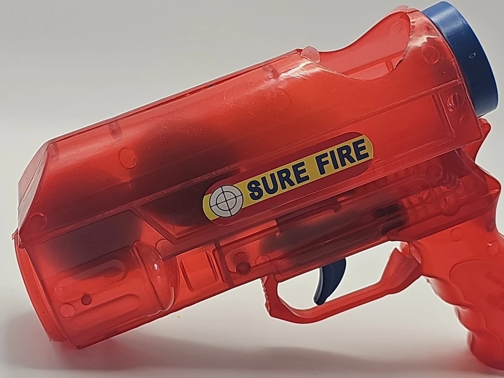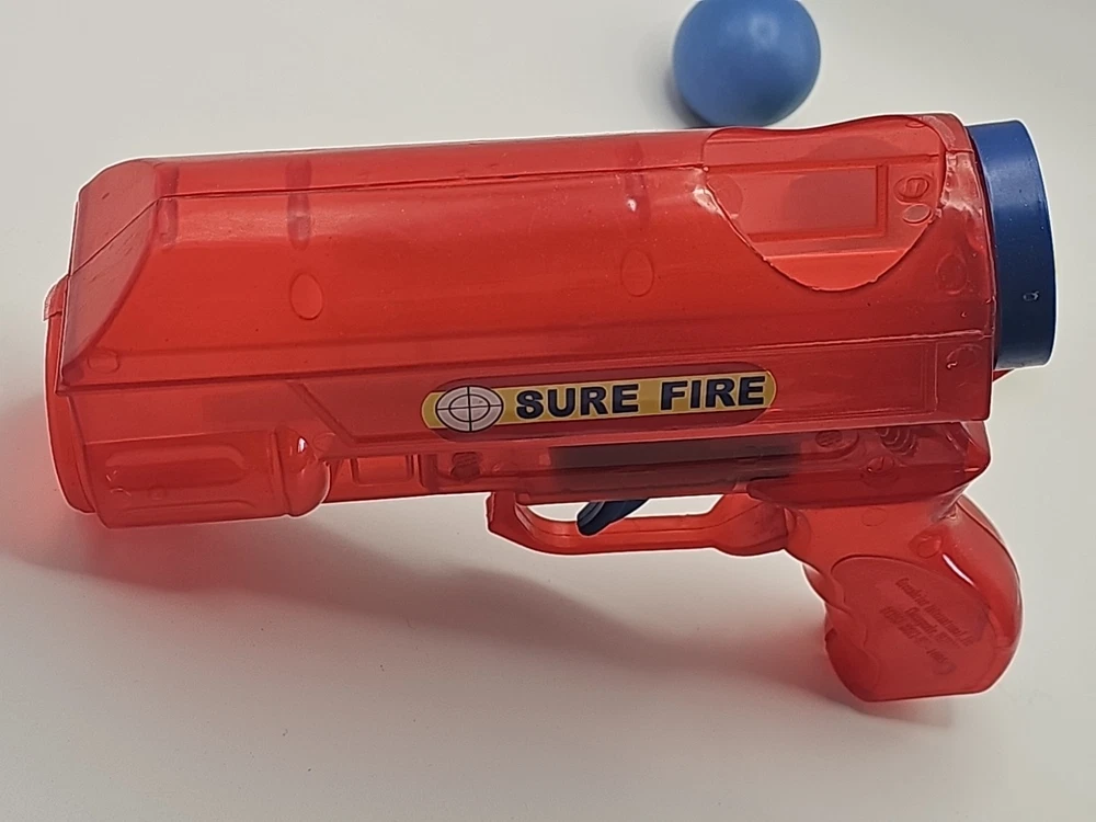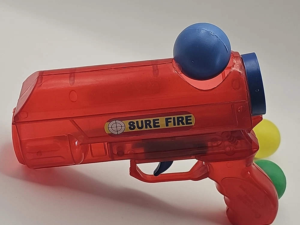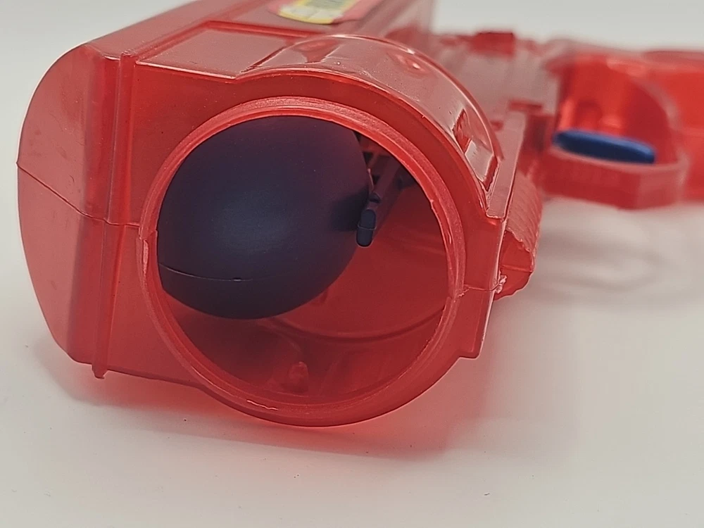 Vintage Red & Purple Plastic Ping Pong Ball Gun with 3 Color Balls - Functional