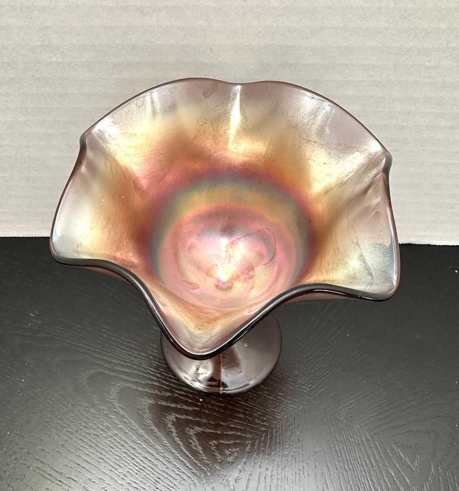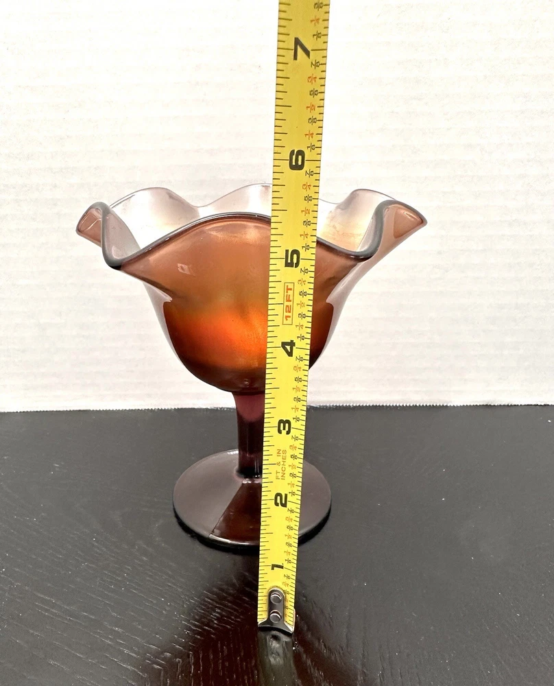 Vintage Ruffled Edge Red Carnival Glass Compote Candy Dish