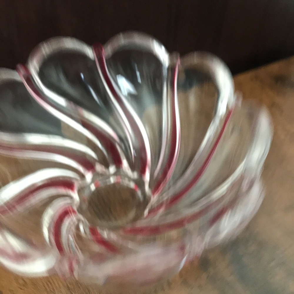 Add a touch of vintage charm to your holiday decor with this beautiful red swirl trinket or mint candy bowl. Perfect for the Christmas season, this bowl is sure to be a hit with guests and family members alike. The intricate design and vibrant color make it a unique addition to your collection of holiday decorations. Crafted with care and attention to detail, this bowl is ideal for storing small treats or as a decorative piece. Its rich red color is sure to stand out on any table or mantle, making it a great conversation starter. Whether you're looking to add to your collection of holiday collectibles or simply want to bring some festive cheer into your home, this beautiful swirl bowl is the perfect choice.