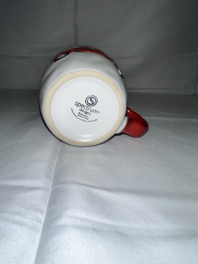 This rare SPECTRUM Designz mug features an old glazed red truck carrying a Christmas tree, perfect for the 2018 holiday season. The mug is made of ceramic and porcelain in vibrant red color, suitable for both hot and cold beverages. It is a collector's item from the 2010-2019 period, depicting a festive and nostalgic design that is sure to be enjoyed by any unisex adult who appreciates unique mugs for their collection.