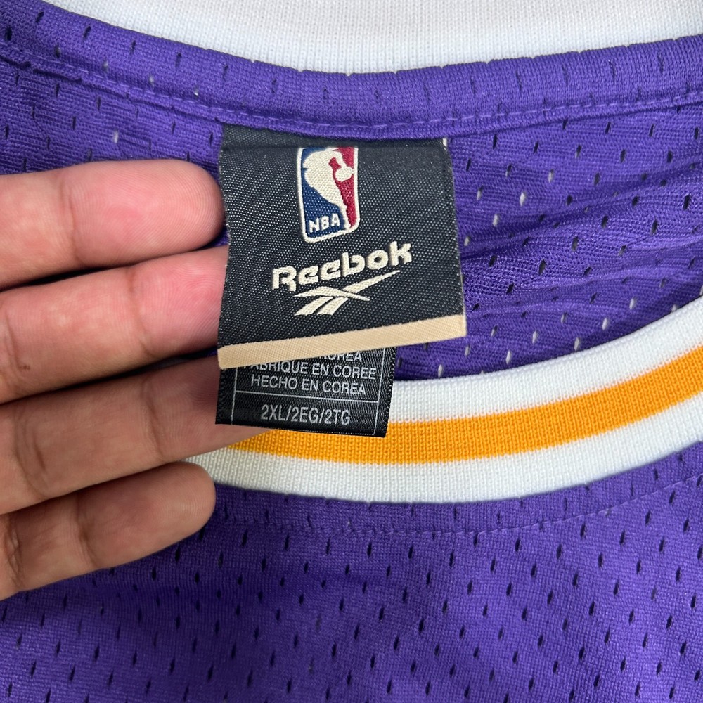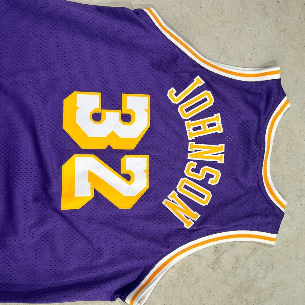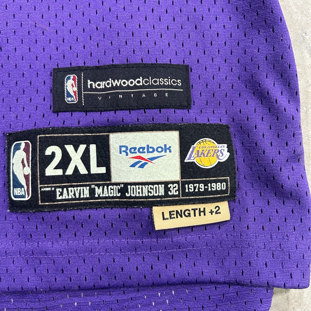 Step up your game with the vintage Reebok #32 Magic Johnson Los Angeles Lakers NBA Basketball Jersey. A classic piece of sports memorabilia, this jersey celebrates the legendary career of Magic Johnson, capturing the essence of the Lakers' heritage and the thrill of the regular season. Designed for unisex adult fans, it's a bold statement piece that channels the spirit of the game. Crafted in a striking purple, this size XL jersey is a standout tribute to the iconic player and a must-have for any serious collector or basketball enthusiast. Whether you're hitting the court or displaying it among your treasures, this jersey is a slam dunk for fans of the sport and the legend of Magic Johnson.