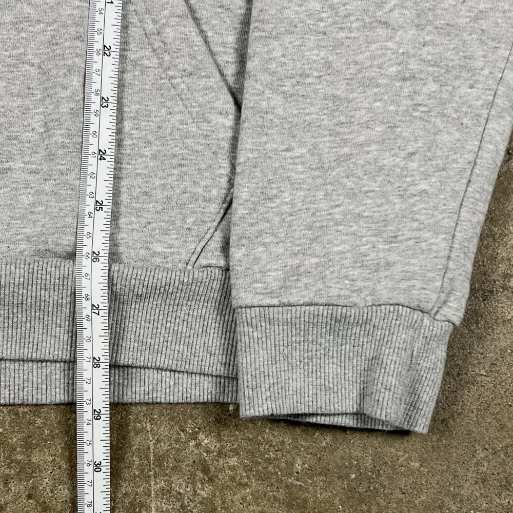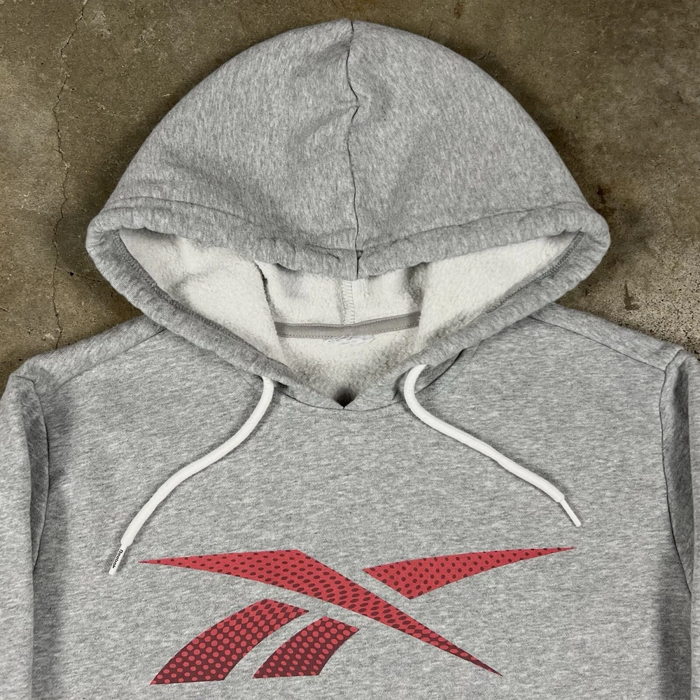 Elevate your casual style with this vintage Reebok hoodie. This grey hoodie features a colorful logo accent on the chest, and is made of a comfortable blend of cotton, polyester, and cotton blend fabrics with a soft fleece fabric type. The hoodie has a pullover style with a drawstring closure, long sleeves, and pockets for added convenience. Ideal for gym & training, walking, cross training, CrossFit, running & jogging, this hoodie is machine washable and perfect for all seasons. Whether you're into sports or just looking for a classic and retro addition to your wardrobe, this hoodie is a must-have. The unisex design makes it suitable for both men and women. Flaws pictured if any. Measurements pictured.
