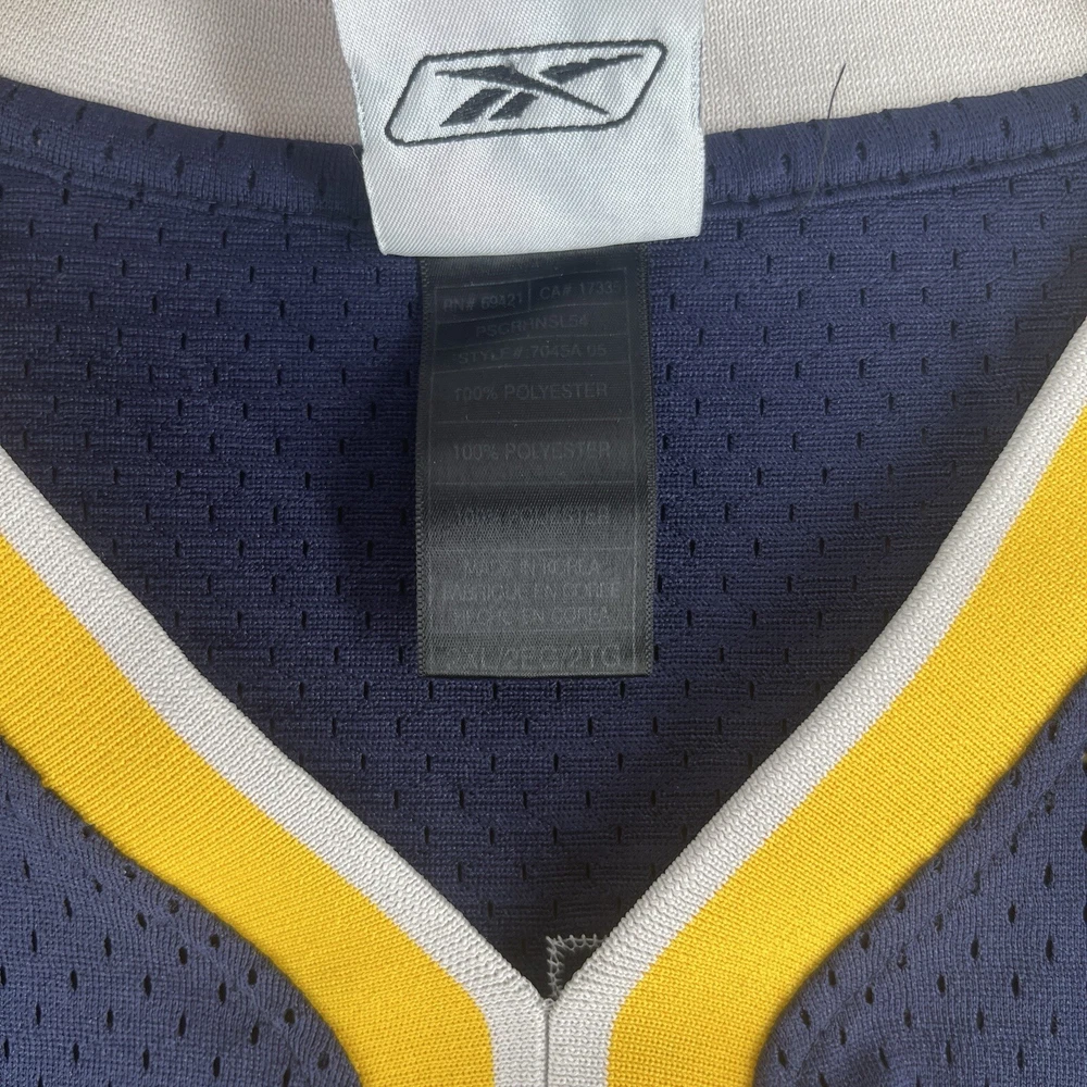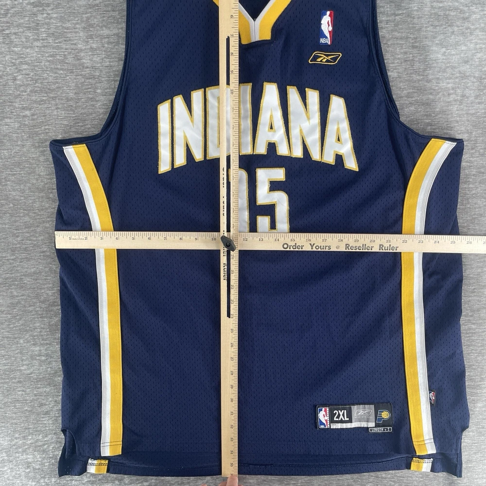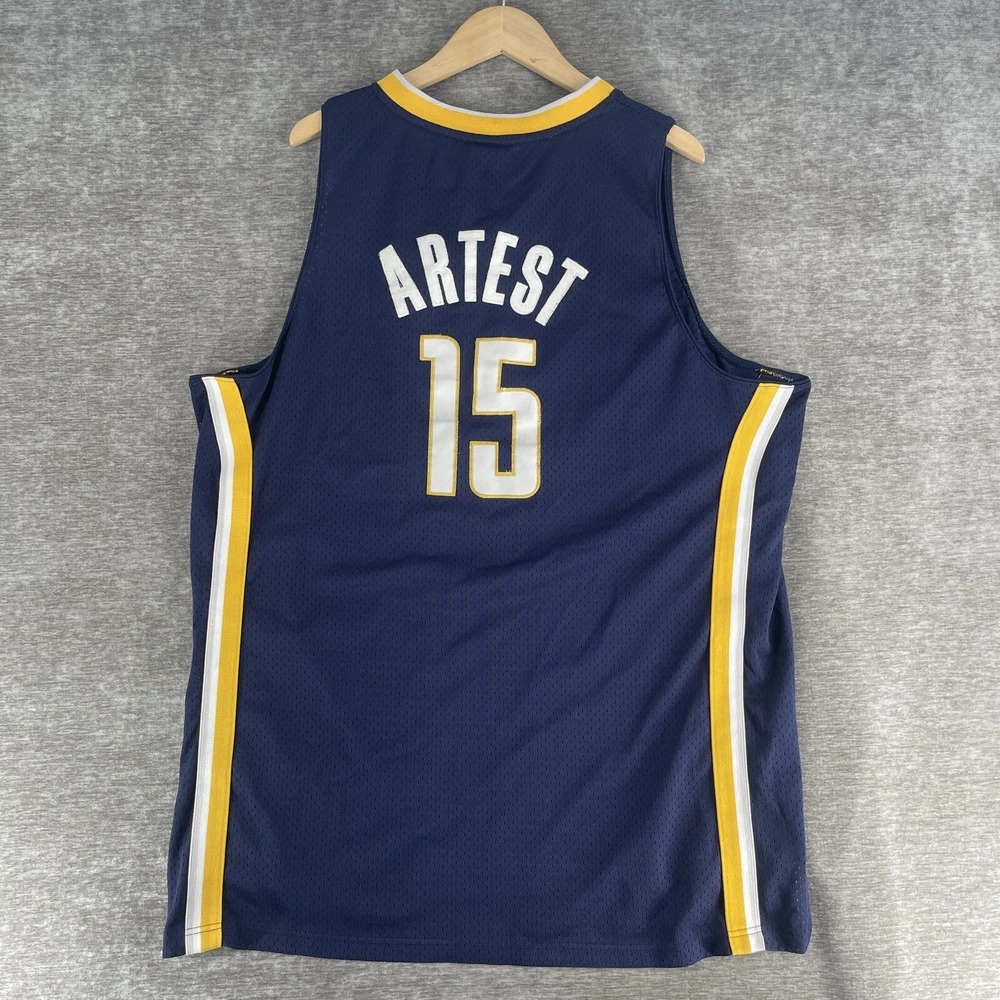 Embrace the nostalgia of the hardwood floors with this vintage Reebok Indiana Pacers #15 Ron Artest Swingman Blue Jersey. A true collector's piece for any fan of the game, this jersey celebrates the legacy of the NBA's talented players. Crafted with the iconic colors and design synonymous with the Indiana Pacers, it's a must-have for enthusiasts of the team and the sport. In a men's size XL, it's ideal for displaying your support during the regular season or adding to your collection of basketball memorabilia. The jersey's featured refinements include the authentic Swingman design, ensuring you get as close to the court experience as possible, without the need for a court ticket. Whether you're cheering from the stands or reminiscing about the good old days of basketball, this jersey brings a piece of the action into your home.