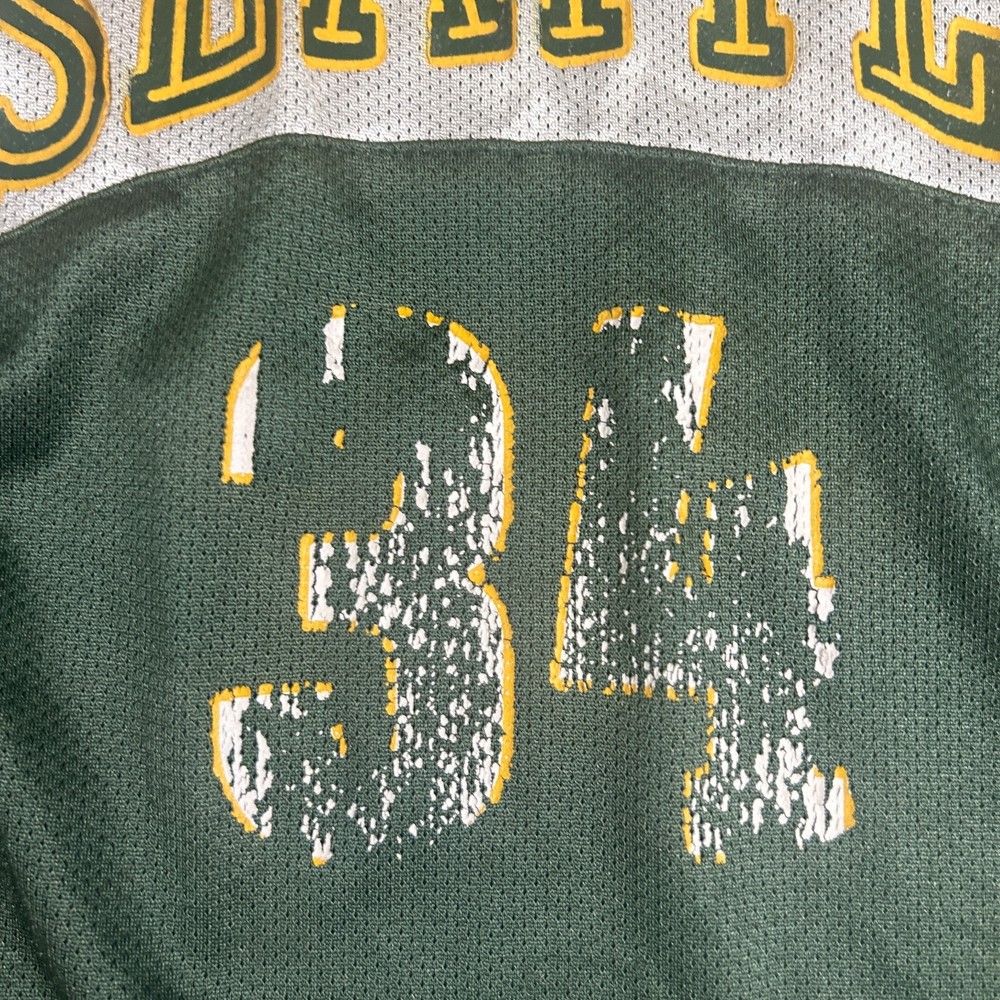 Immerse yourself in the nostalgia of the hardwood floors with this Reebok NBA Seattle Supersonics #34 Ray Allen Jersey. A must-have for any basketball enthusiast, it captures the spirit of the game and celebrates one of the sport's sharpest shooters. Designed for unisex children, this jersey boasts a vibrant green color, reflective of the iconic Supersonics' hues, and is sized large, fitting ages 14-16 with a comfortable capacity of 8 oz. Crafted with attention to detail, this piece hails from the Russian Federation, assuring the quality and craftsmanship that Reebok is known for. It's perfect for wearing during the regular season or for displaying as a cherished collector's item. Whether you're hitting the court or the streets, this jersey is a timeless tribute to the legendary Ray Allen and the storied legacy of the Seattle Supersonics.