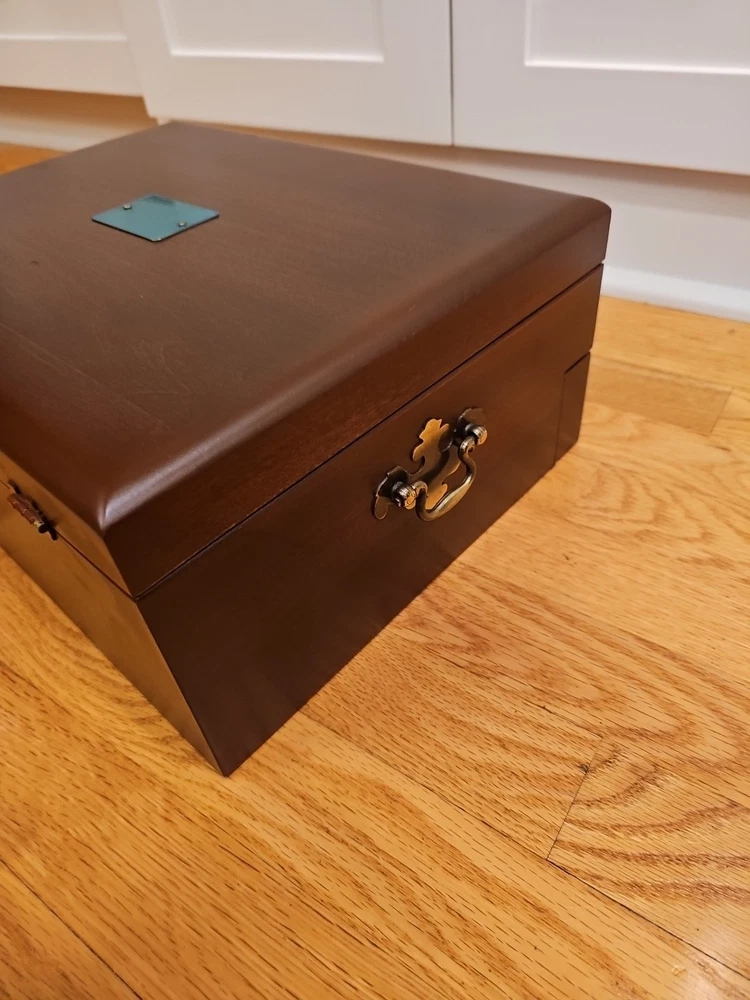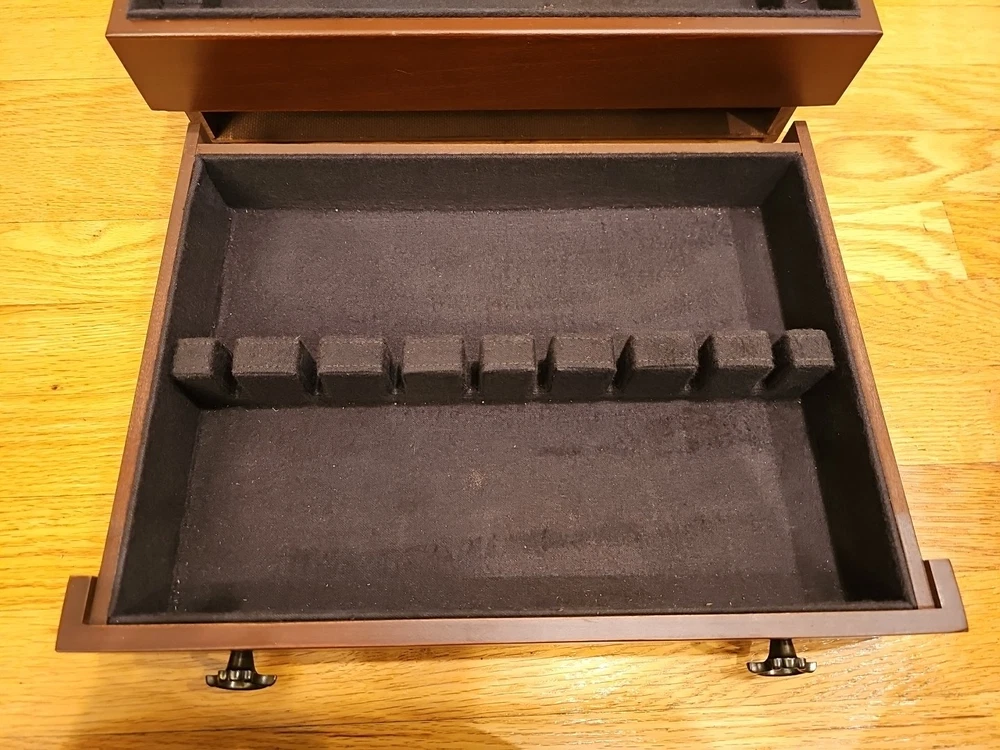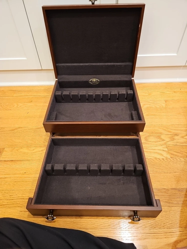 Vintage Reed & Barton Silversmiths Wooden Wood Silverware Chest Box w/ Drawer