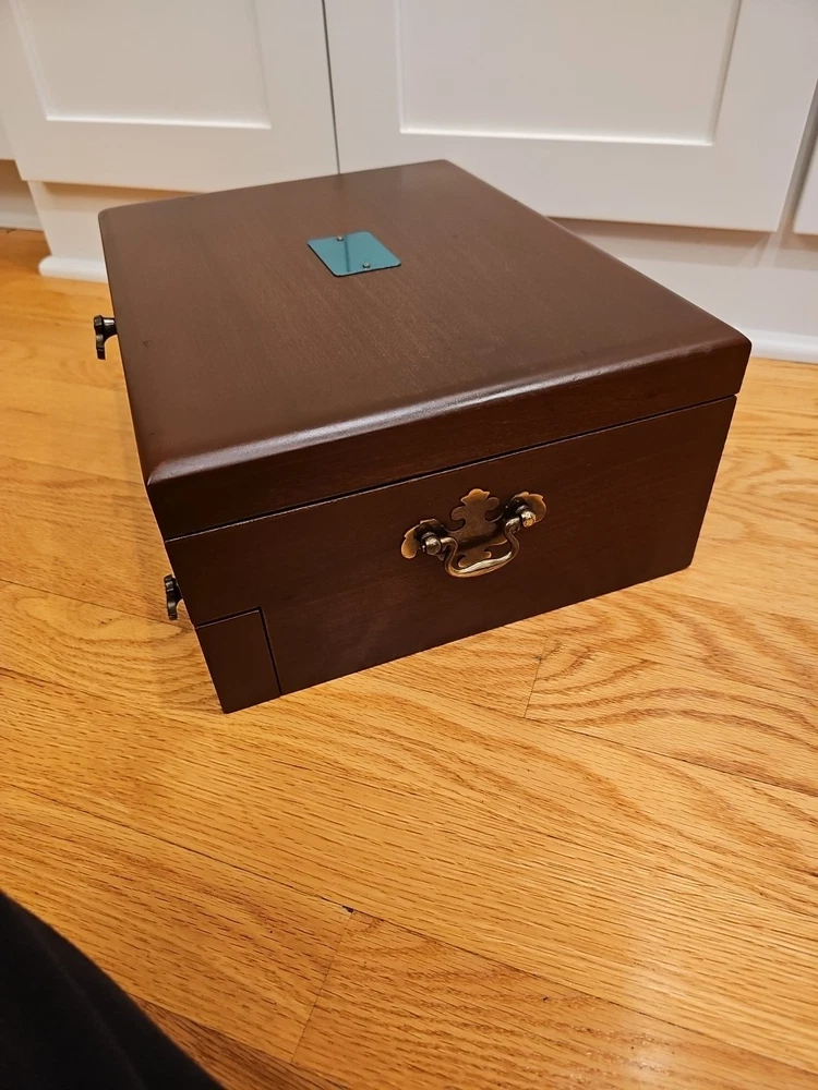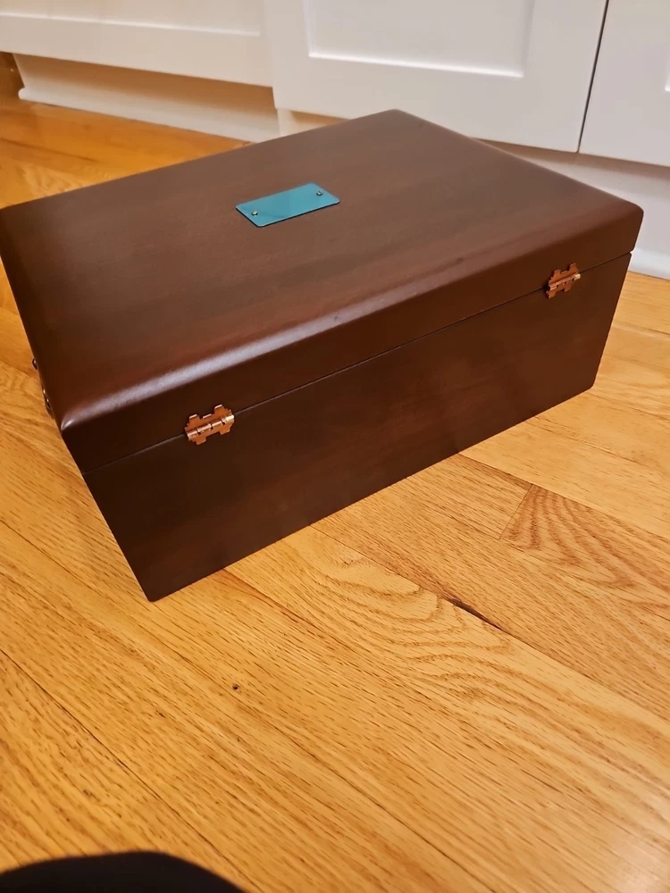 Material: Wood Number of Compartments: 2 Item Height: 6" Style: Traditional Custom Bundle: No gtin13: n/a Type: Chest Country of Origin: United States Color: Brown Features: Multipurpose Item Depth: 11 1/4" Wood Tone: Cherry UPC: n/a Item Width: 14 3/4" Item Weight: 4 lbs Brand: Reed & Barton