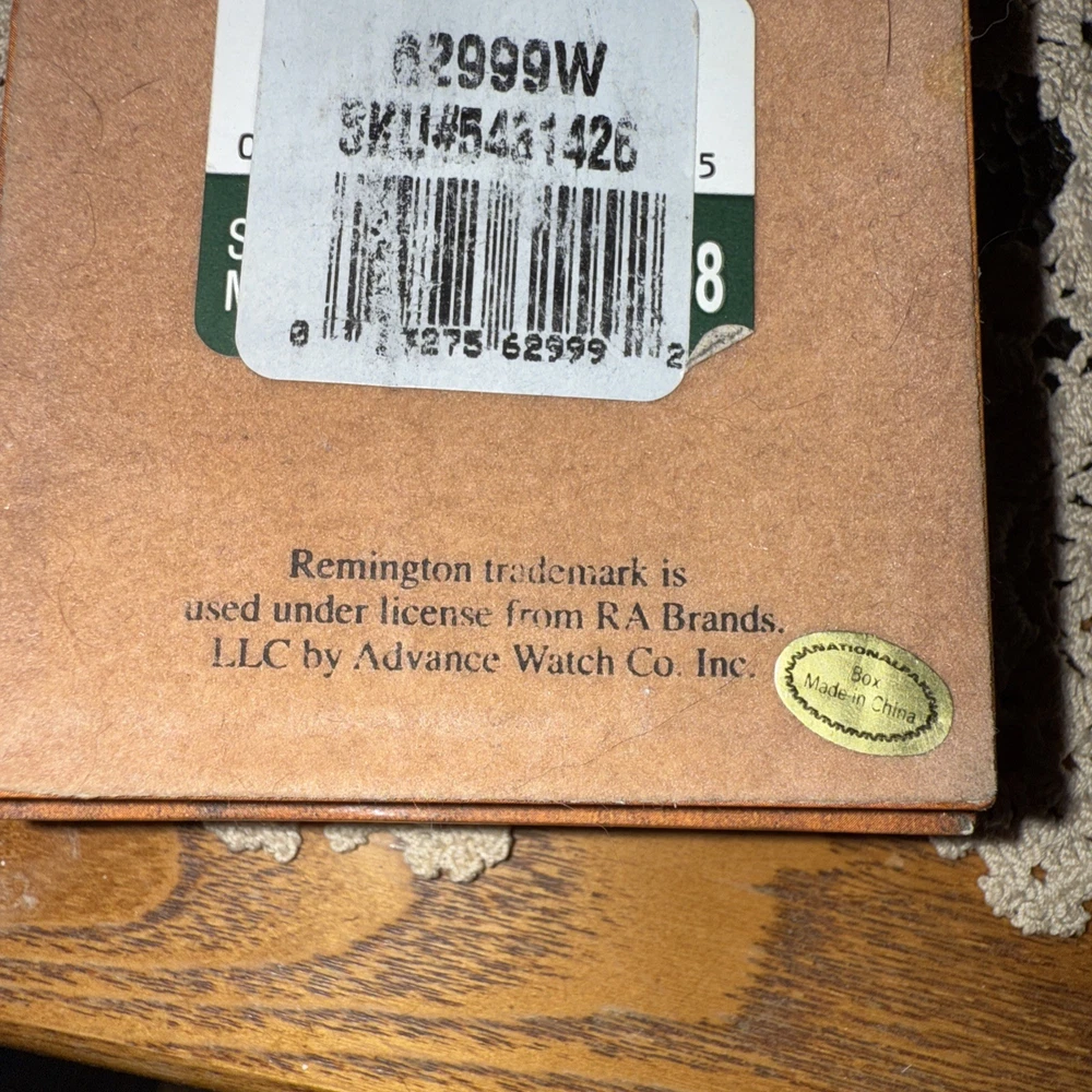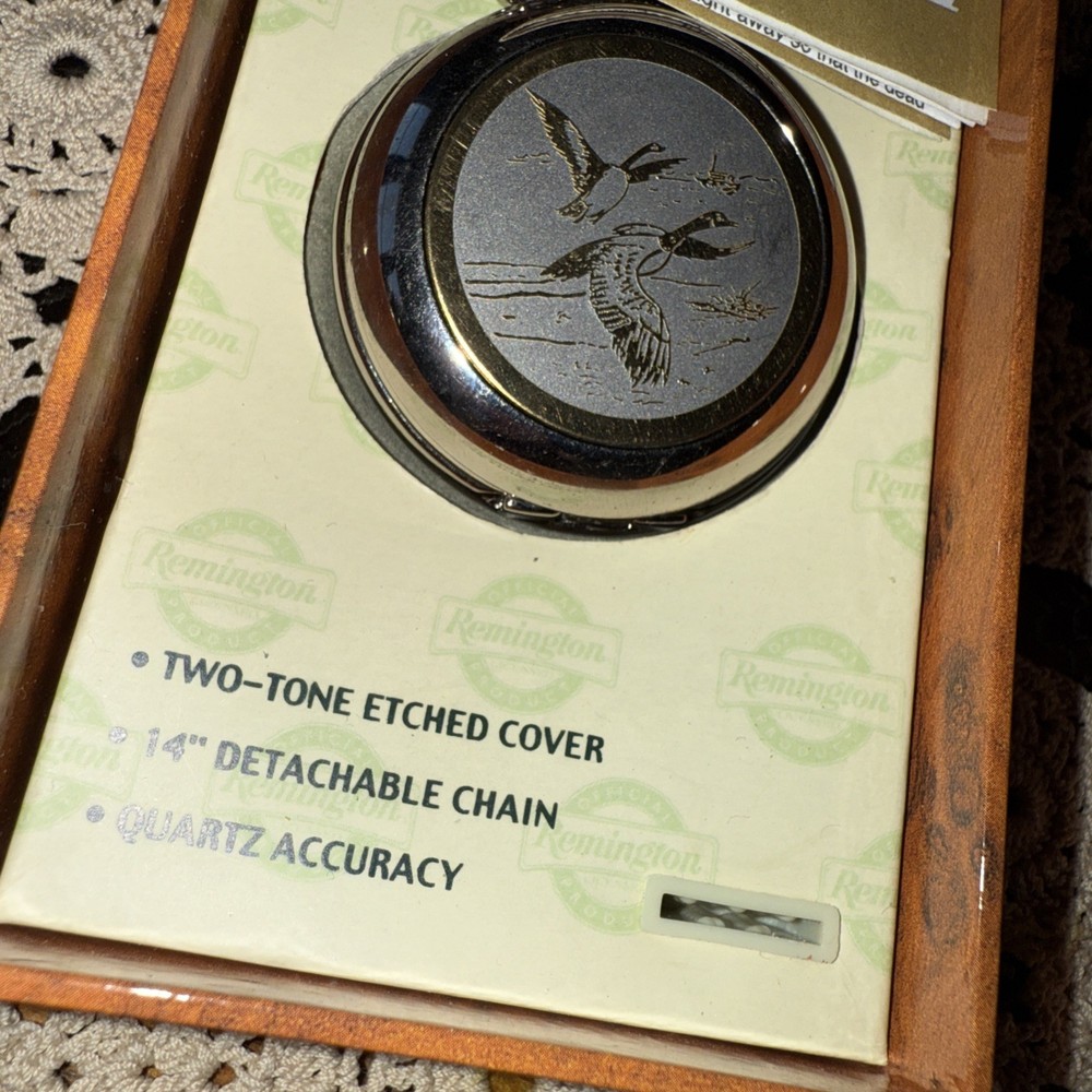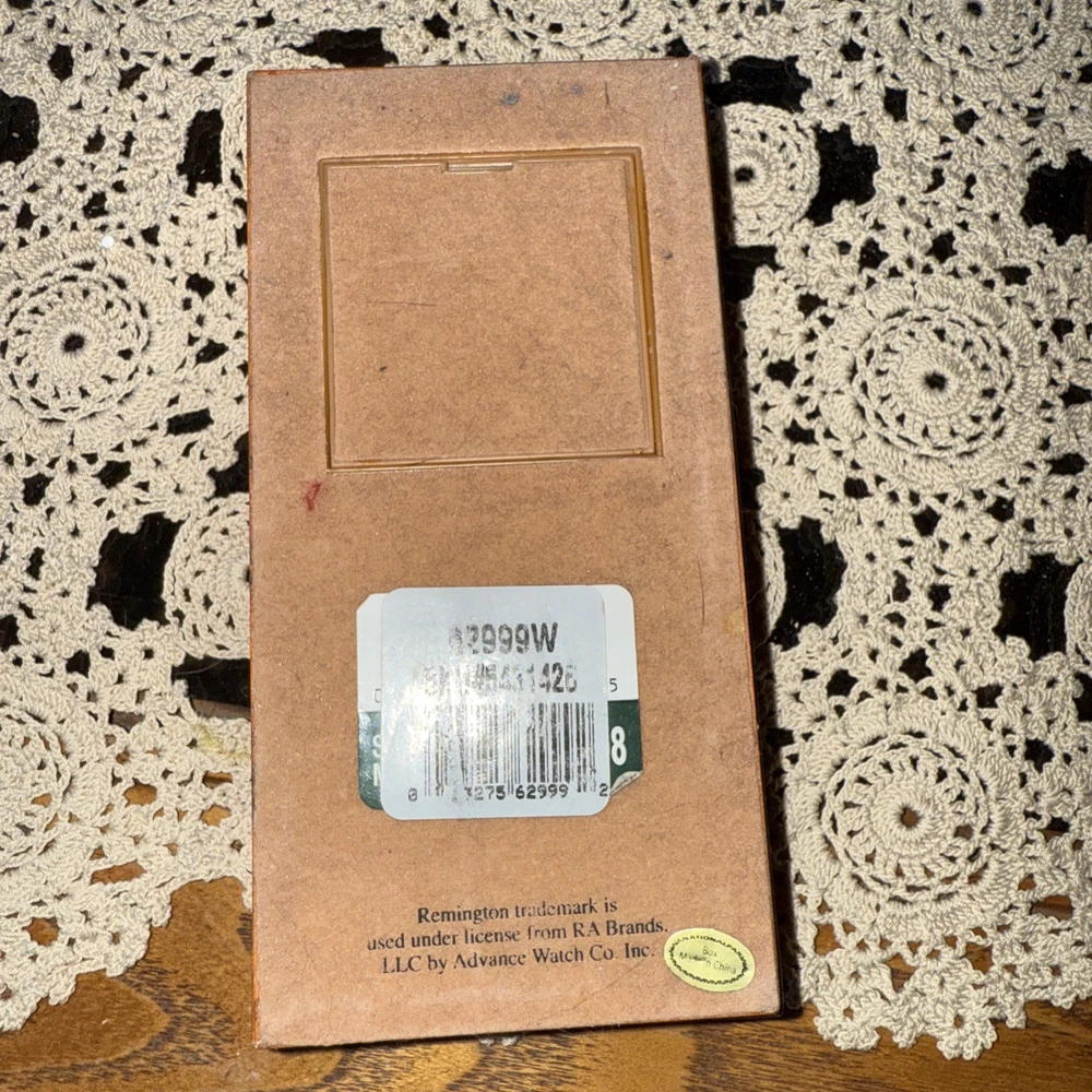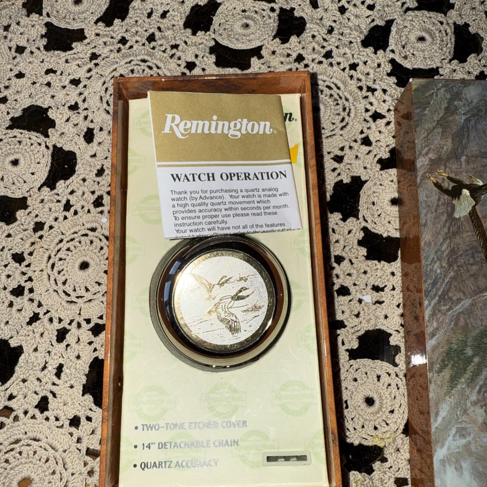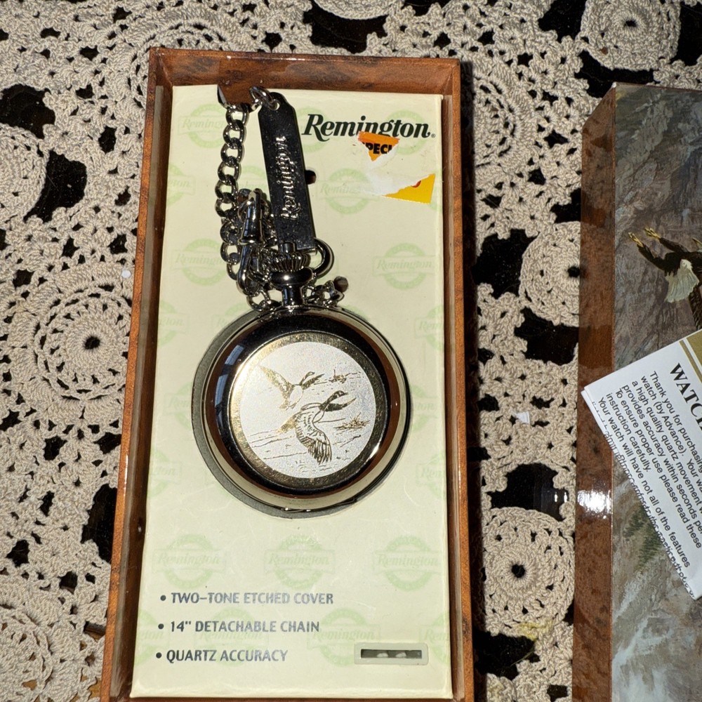 Beautiful Remington men’s pocket watch brand new and wooden case eagle theme. Very nice gift. Most likely will need a battery never used.