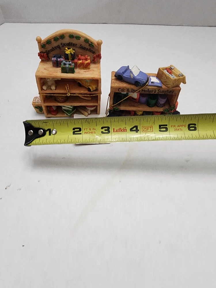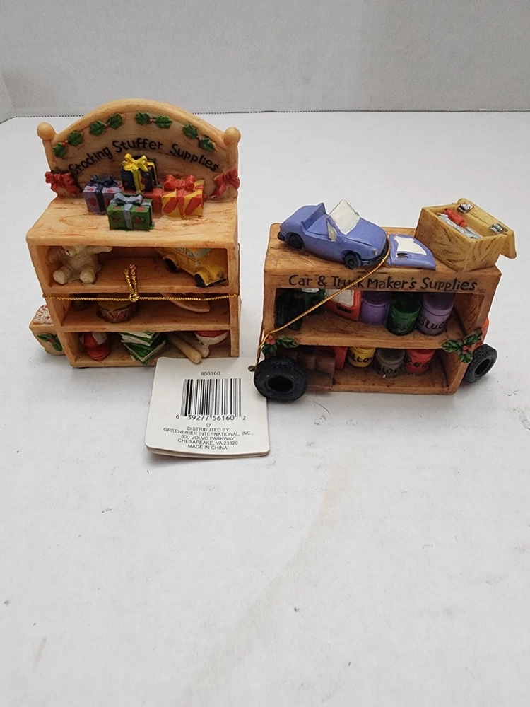 This lot of two vintage Santa's helpers figurines are perfect for adding Christmas cheer to any collection. Made of durable resin material and painted with attention to detail, these retired figurines are sure to delight collectors and holiday enthusiasts alike. Crafted in the United States, these Santa's helpers are a perfect addition to any holiday décor. Ideal for displaying on a mantel or as part of a larger collection, these figurines are a must-have for any Christmas lover.