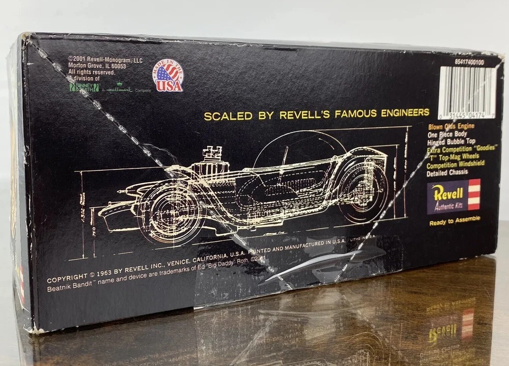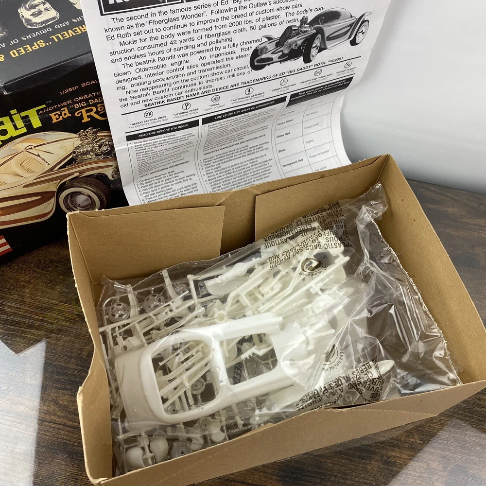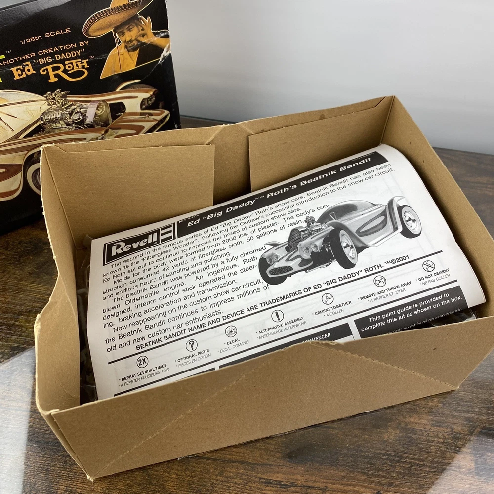 Year Manufactured: 2001 Subject: SHOW CAR Brand: Revell Item Weight: 0.5 lb Material: Plastic Vintage: Yes Type: Model Kit Theme: ED "BIG DADDY" ROTH Assembly Status: Unassembled Kit Model: BEATNIK BANDIT CUSTOM SHOW CAR Scale: 1/25 Set Includes: Car