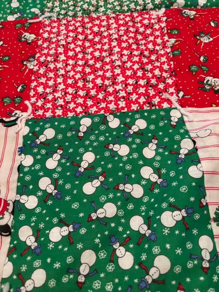 Vintage Reversable Quilted / Snowman Handmade Christmas Tree Skirt 59" This is in excellent Condition no stains or holes. This measures 59" Diameter not including the lace trim. Also there is a label attached that reads "Hand Crafted by Smiley Fran Fashions" Shop with confidence! With over 25 years of experience in online sales and a proven track record, you can count on me for top-notch service. I carefully pack and ship your items, offering same-day shipping for orders placed before 12 pm EST. Your support means the world to me. Thank you! - Rose