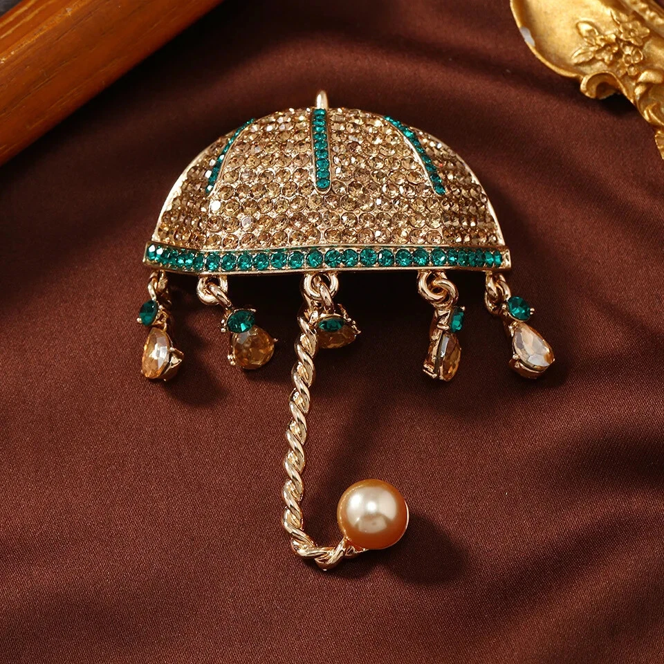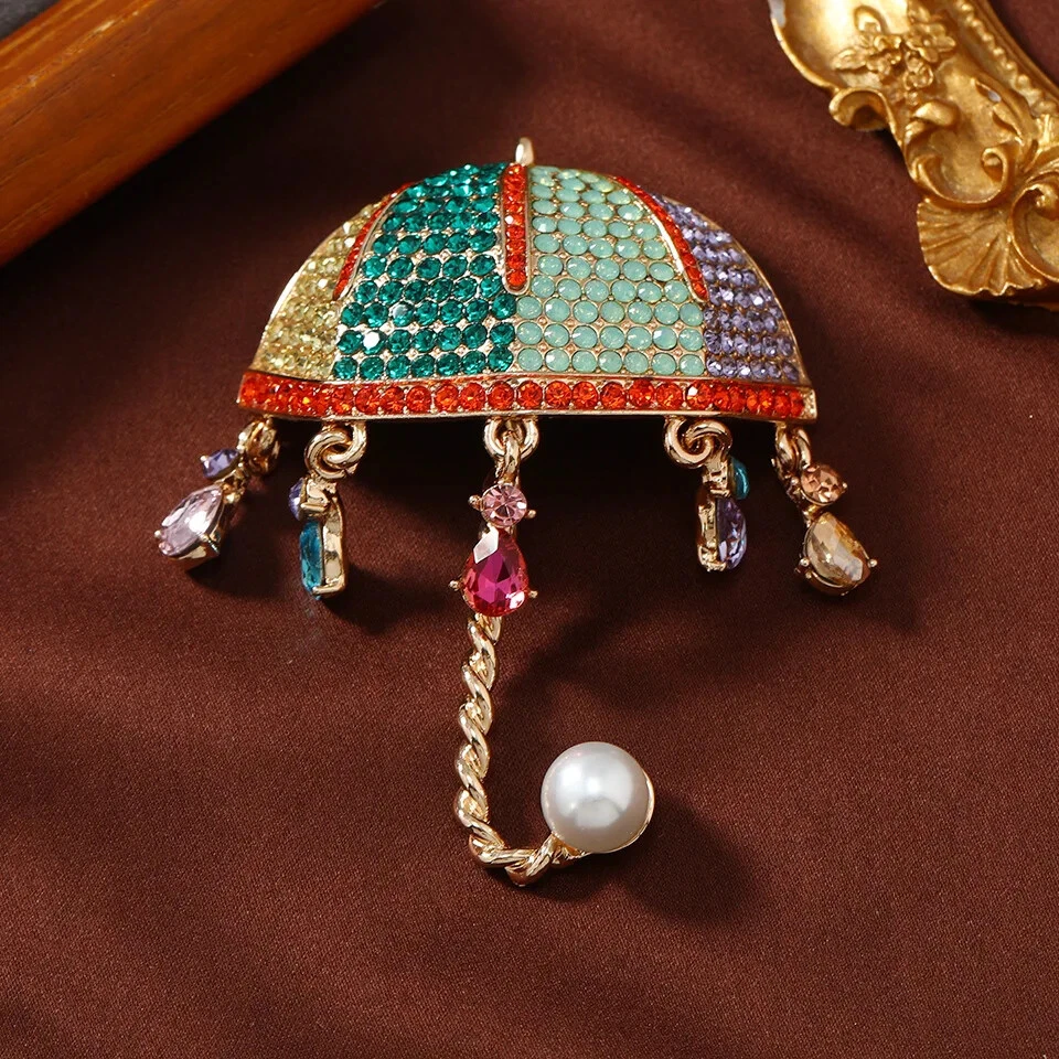 Vintage Rhinestone Umbrella Brooch Creative Tassel Pin Accessories Corsage