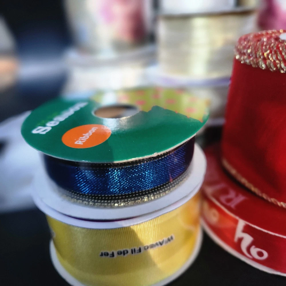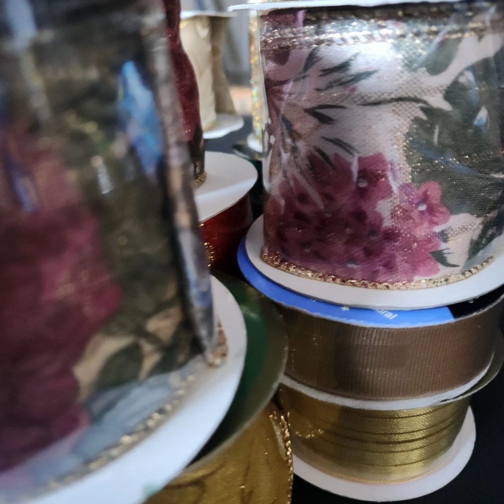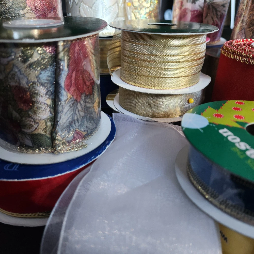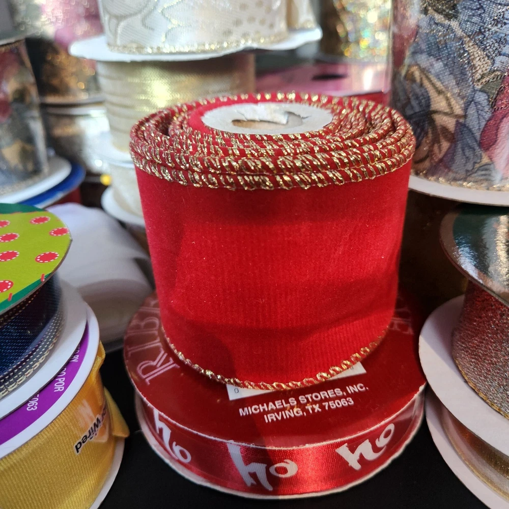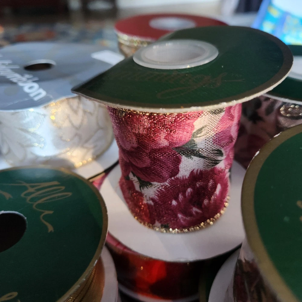Huge lot of vintage ribbon. Dated from 1998-2005. Wide red velvet ribbon, Christmas ribbon, heart printed ribbon, floral prints and much more. Most are unopened. Excellent condition. No smell.