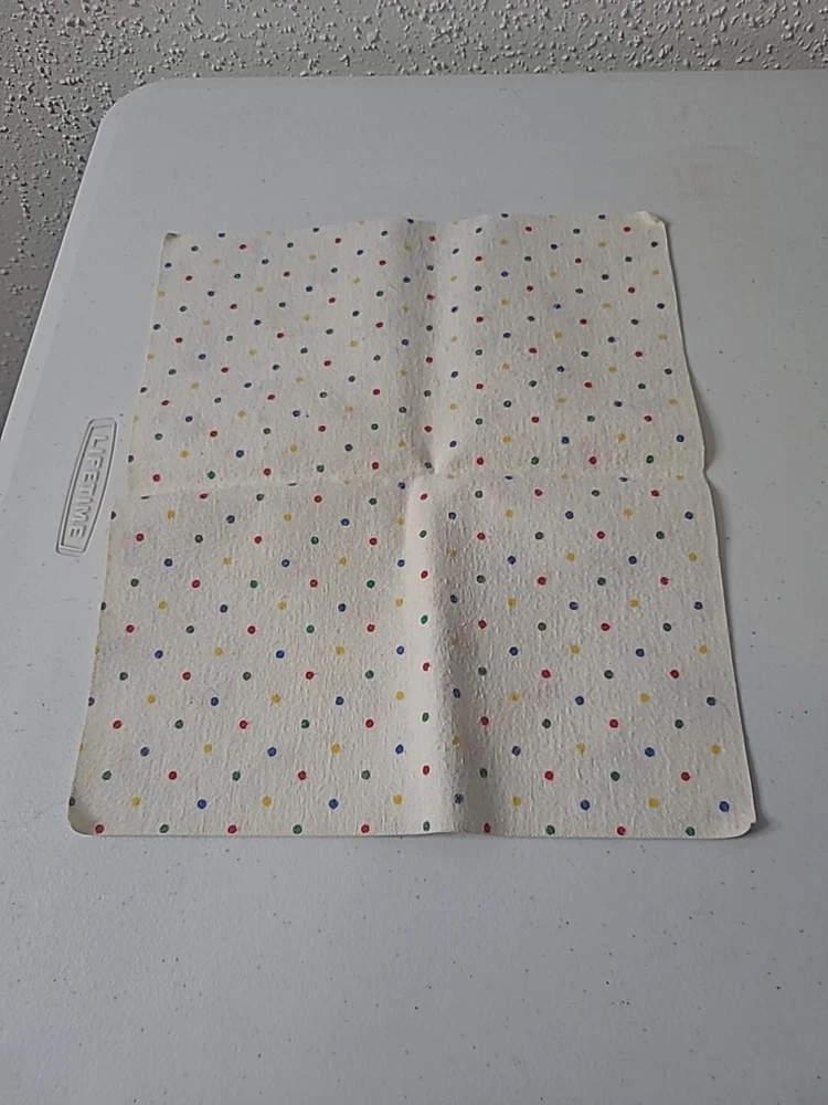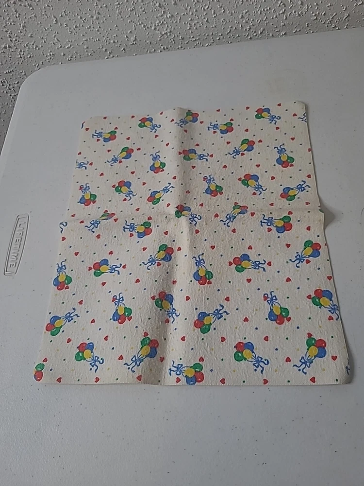 This vintage baby diaper changing pad is a colorful addition to any nursery. Measuring 11X13", the pad features a fun pattern of primary colors, dots, and balloons. It's perfect for changing your little one's diaper or for use as a soft surface to play on. Made for parents who value quality and style, this changing pad is pre-owned but in excellent condition. Its multicolor design is sure to brighten up any room, and the pad is easy to clean for your convenience. Order now and enjoy a practical yet playful addition to your baby's essentials.