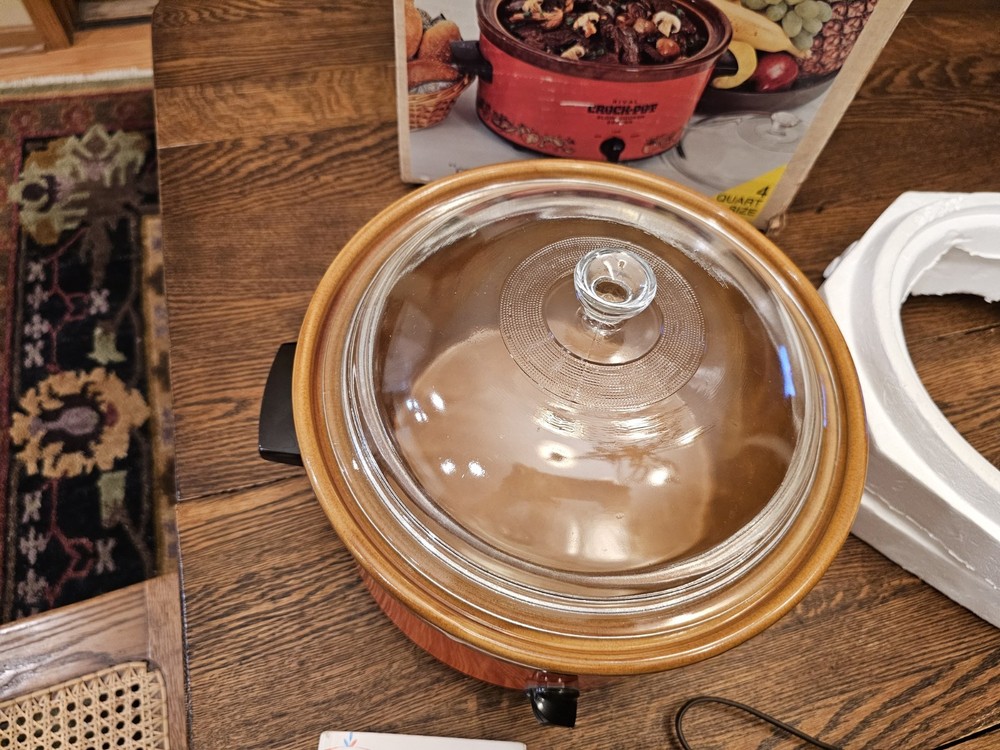 A great unused Rival 3104 FLAME 4 QUART CROCK-POT. ORIGINAL BOX AND THE RECIPE BOOKLET. A GREAT ORANGE COLOR. TESTED AND WORKS GREAT. Shipping to the lower 48 states and no P.O. boxes.