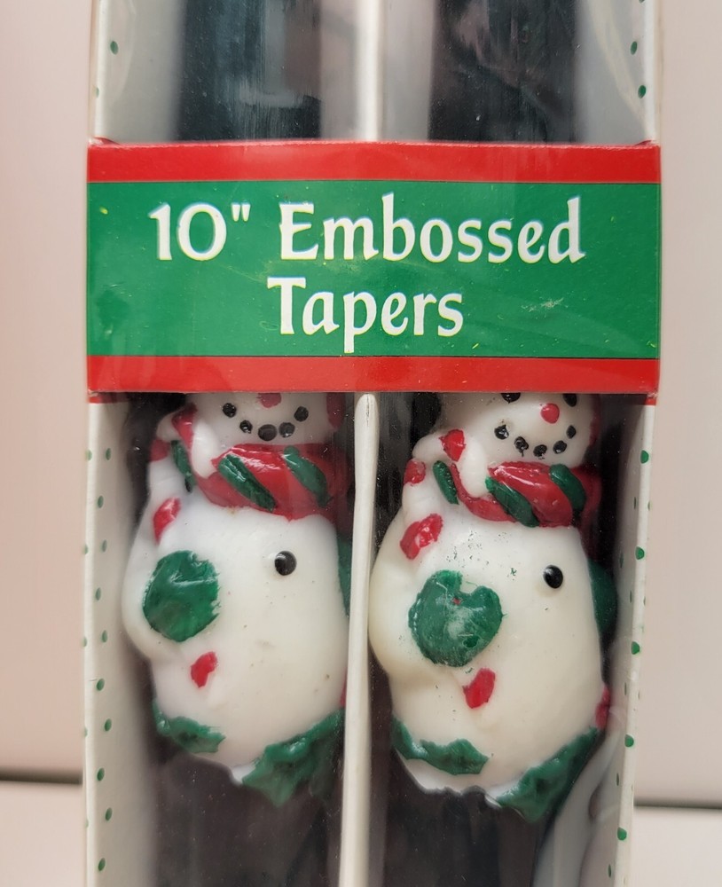 10” Embossed Taper Candles White Robert Allen Candle Co. Original Boxes - Unopened/NIB 2 Pack: (see photos) 1 Pair - Snowman 1 Pair - Santa