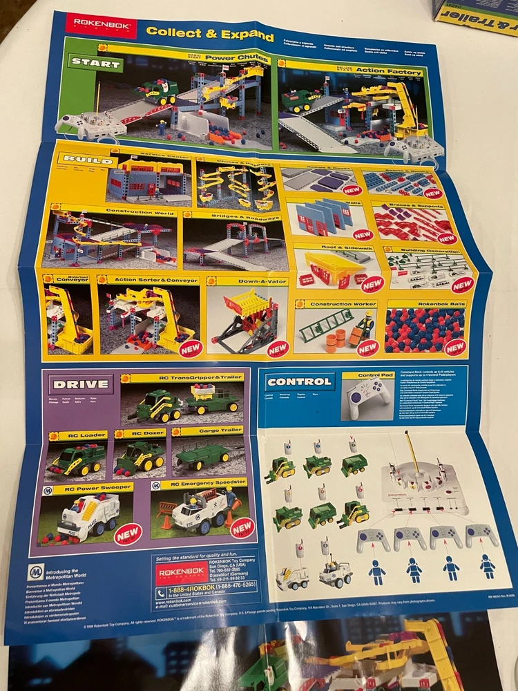 Description: Huge Lot Vintage Rokenbok Radio Control Building System: Vehicles and Building sets. Three Vehicles, Two Controllers, One Deck, Posters and Building sets. This was originally purchased from a high-end educational toy store and is categorized a STEM Educational Toy. Really a lot of fun. We purchased it for one of our children, so, believe me, I know they were quite the commitment, and hold their value. The entire group has always been well cared for in proper containers. Condition: Used, Very Good Condition. Zoom-in on all photos. I took pictures from several angles, so in that case it may appear there are two of certain pictures. I checked the vehicle and controller-functions; they were working, however, the set is vintage, so I cannot guarantee all mechanical parts. Zoom-in on all photos, however, some of the pictures are from a square cut out of the original boxes for each set, or advertising paperwork and directions. In this case there could be other items pictured that are not included. Also, there are several really cool unused posters that would be great to decorate a child's room. In this case I opened the unused posters for you to few, however, I cannot guarantee all items pictured in the posters are present in the listing. If you zoom-in on photos you should be able to see individual items included in the sets. I cannot guarantee that each small part is included because I do not know the original inventory of each set; it is a huge lot. -Buyer Pays Shipping -I SHIP FAST -Weight: It will be heavy. Packing will increase overall weight, and BUYER LOCATION determines final shipping costs. Similar sales for similar Rokenbok lots shipped for $100.00 plus. -Please message questions or concerns. Working to earn your Positive Feedback with Value, Variety and Service. -Thank you for your consideration. -Have a great day.