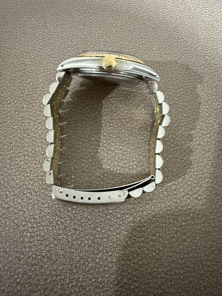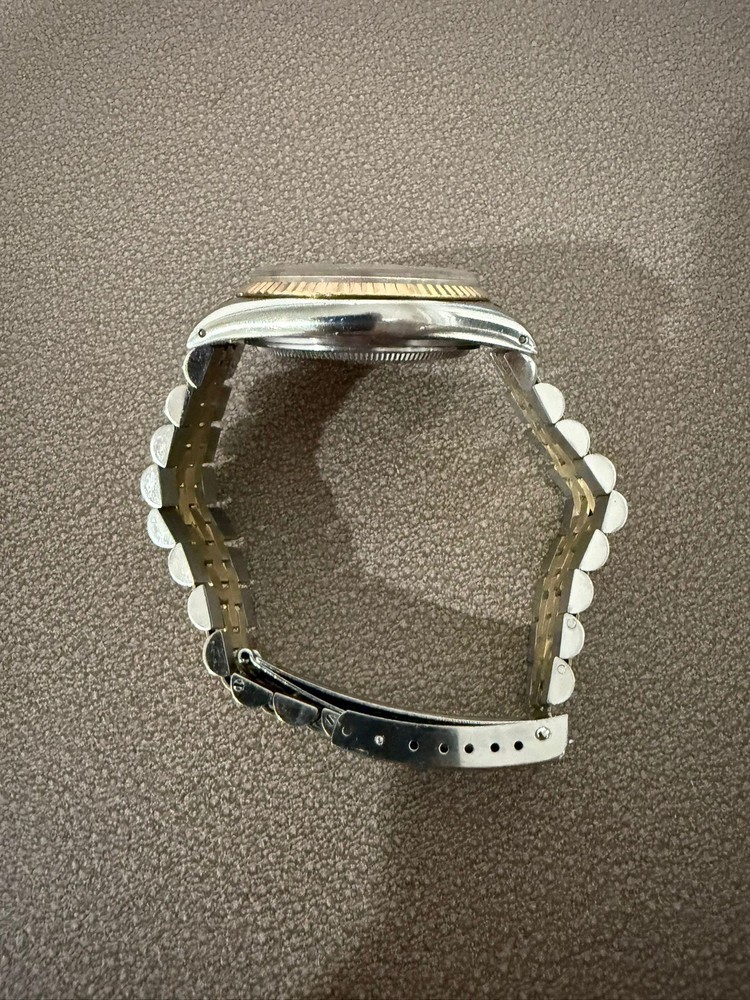 The Vintage Rolex 16013 Buckley Gold Dial Men's Automatic Watch from 1980 is a classic timepiece with a timeless design. Featuring a gold dial, Roman numerals, and a fluted bezel, this elegant watch exudes luxury and sophistication. The 27 jewels movement and water resistance of 30m make it a reliable and practical choice for everyday wear. The Rolex Jubilee band, made of 14k gold and stainless steel, adds a touch of glamour to this iconic piece. A perfect choice for collectors and watch enthusiasts looking for a vintage Rolex with a golden hue.