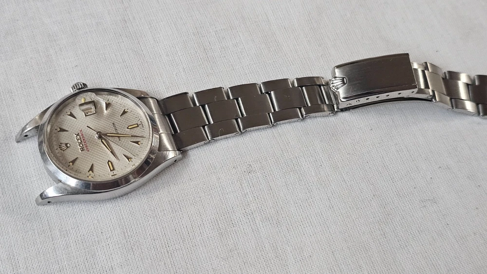 This vintage Rolex Oysterdate men's wristwatch features a classic round shape with a silver stainless steel case and smooth silver bezel. The dial pattern is a stylish honeycomb design with arrow markers and a date indicator. The watch has a mechanical (manual) movement with 17 jewels. The watch is from the 1950s and has a screwback caseback. It comes with a Rolex Oyster band/strap with a lug width of 19 mm and a maximum wrist size of 7.26-7.5 inches. This Swiss-made timepiece is a true vintage gem and would make a great addition to any watch collection. I am so proud of being able to offer you a gorgeous vintage Rolex Oysterdate Precision Ref.6494 men's hand-winding watch. With Honeycomb silver dial which has been refurbished / repainted professionally and looks so handsome and smart. Refurbished on original Rolex dial The stainless steel Oyster case, screw down caseback, smooth stainless steel bezel and crystal are all in good condition for its age. The dial is fitted with silver hands and a date window at 3 o'clock position which is a great asset to this vintage. The robust 34mm stainless steel Oyster case with a screw down Rolex crown and Rolex Oyster bracelet have remained in good condition with general wear but no significant damage. In fully working order- runs strong and tells good time, powered by a reliable Rolex manual movement with 17 jewels. Reference and serial numbers are both present and visible. The original Rolex bracelet will fit up to 7.5 inches wrist. You will get exactly what you see. The pictures say it all. Please check all my pictures for more details as they are the best description of the watch much better than I could. I will ship the watch to your door using FedEx International Priority. Expected to arrive in 3~5 days of shipping. No box or papers are included. I do accept PayPal, Sir..... Please note, the buyers are responsible for import and duty fees. I am so grateful you have visited my E-house. Thanks for your attention !!