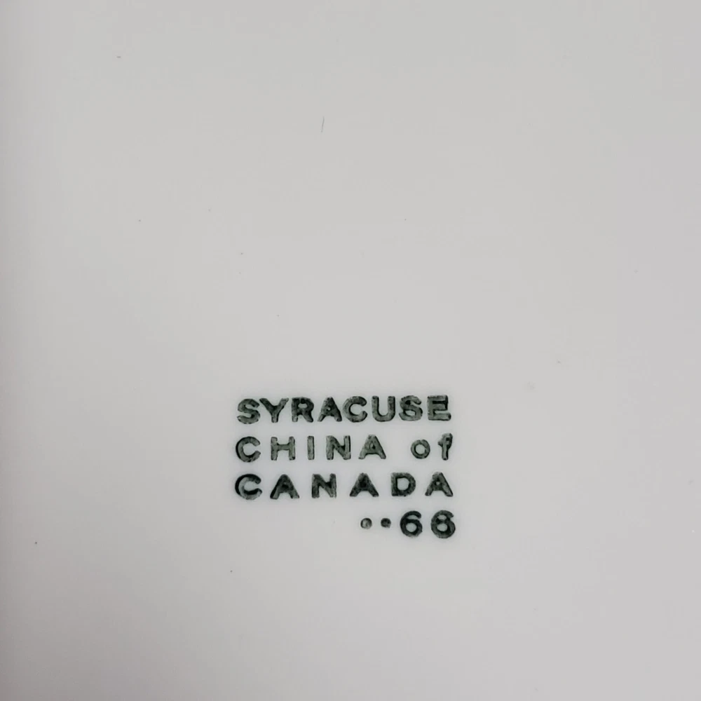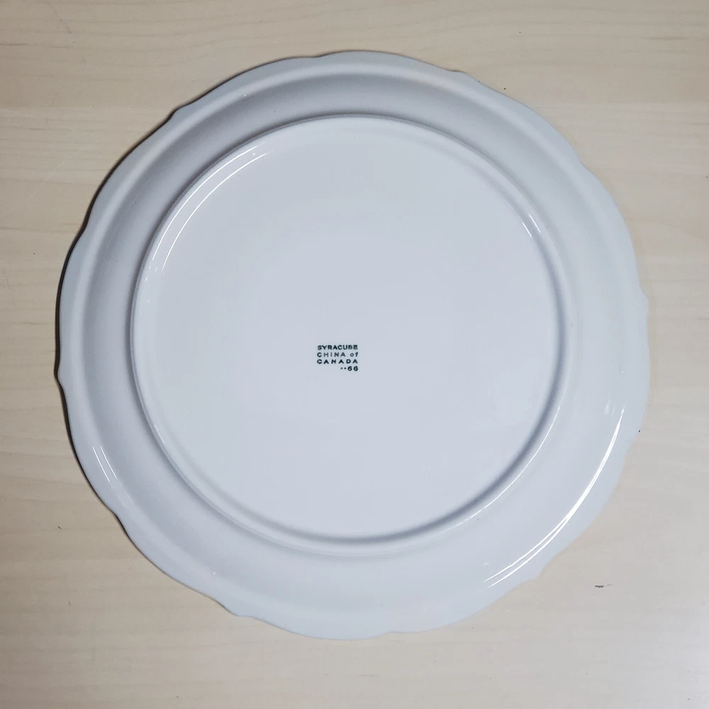 Occasion:All OccasionsSet Includes:PlateCountry/Region of Manufacture:CanadaShape:RoundHandmade:NoPattern:VintageBrand:Syracuse ChinaOrigin:CanadaTime Period Manufactured:1960-1969Vintage:YesMaterial:UnknownColor:WhiteType:Plate